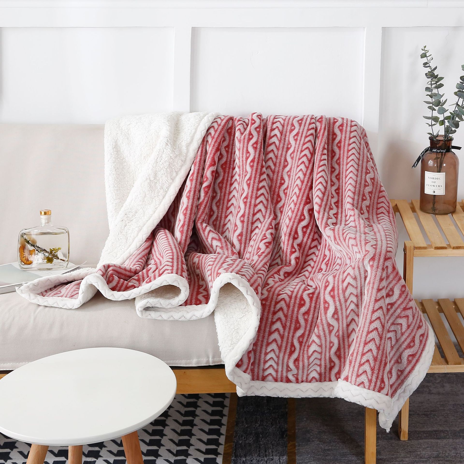 秋冬新款加厚雪花绒双层复合羊羔绒毛毯办公室休闲沙发法兰绒盖毯