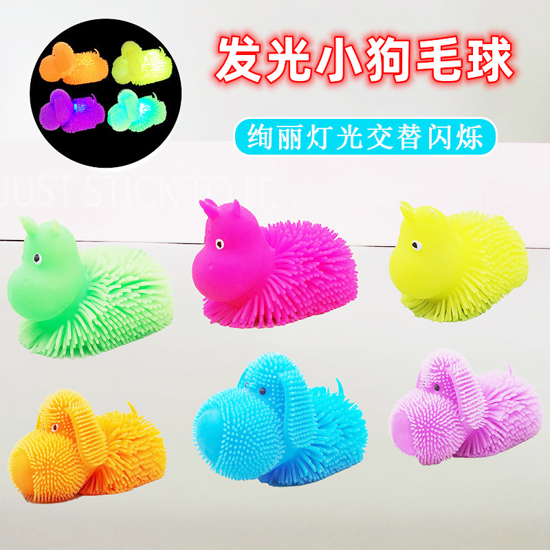 跨境新款TPR解压玩具儿童减压玩具小狗发光毛球软胶发泄创意礼物