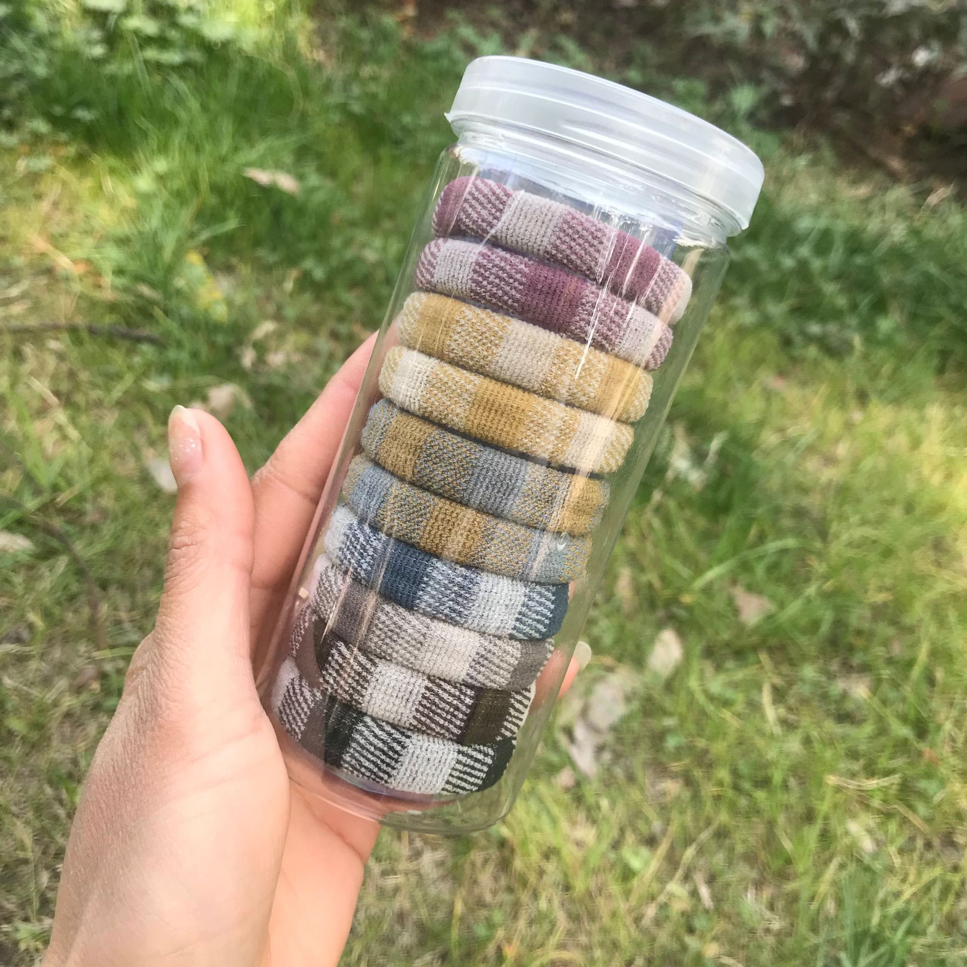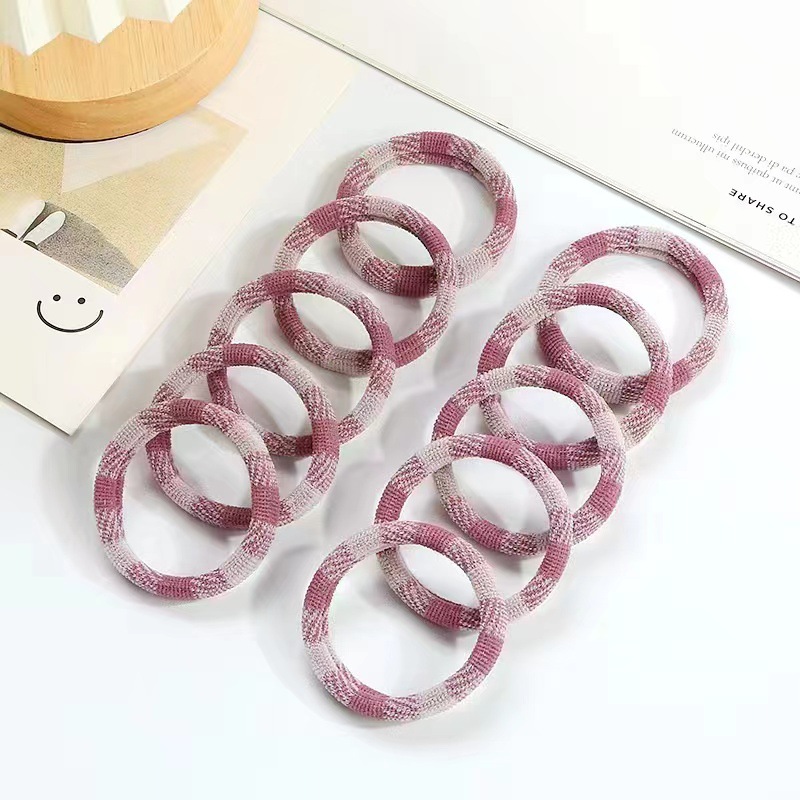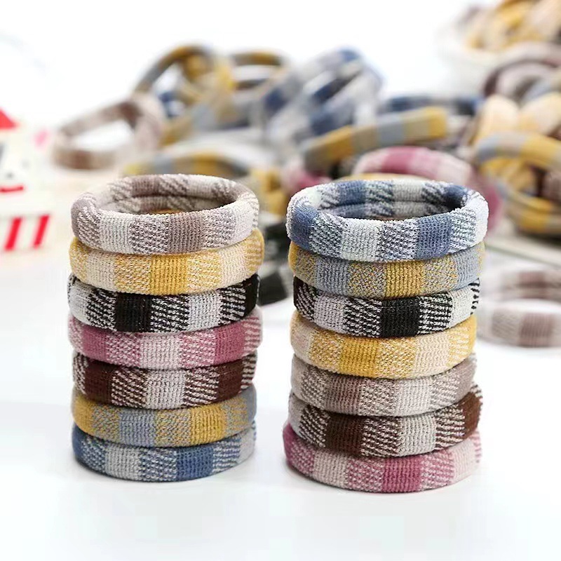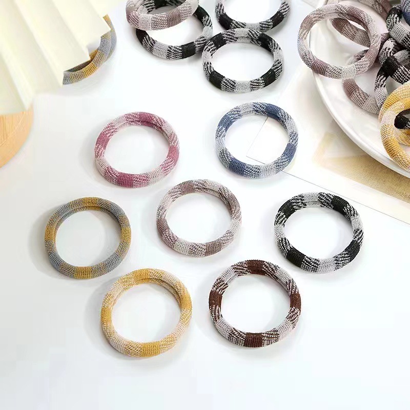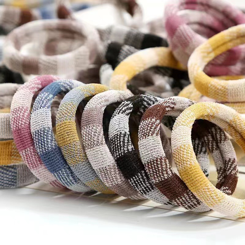 23新款10条高弹力发圈格子无接缝毛巾圈头绳韩版气质皮套批发