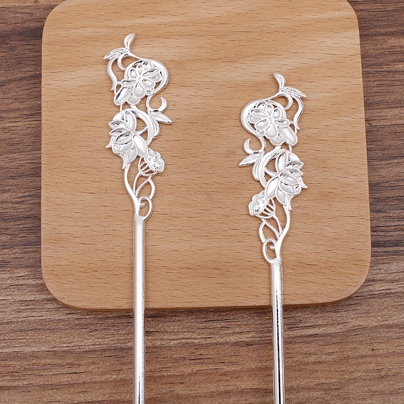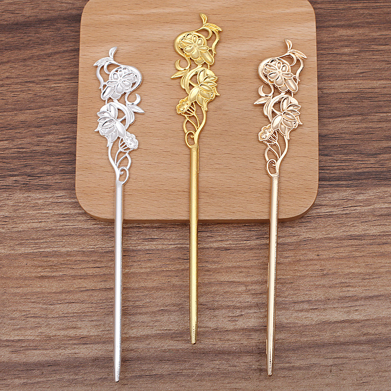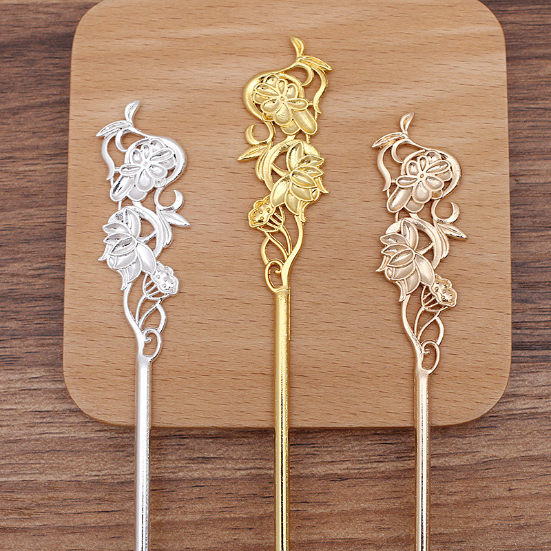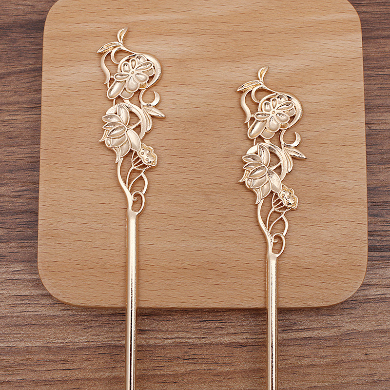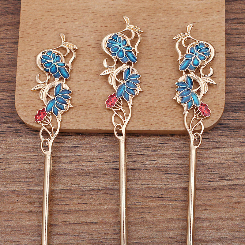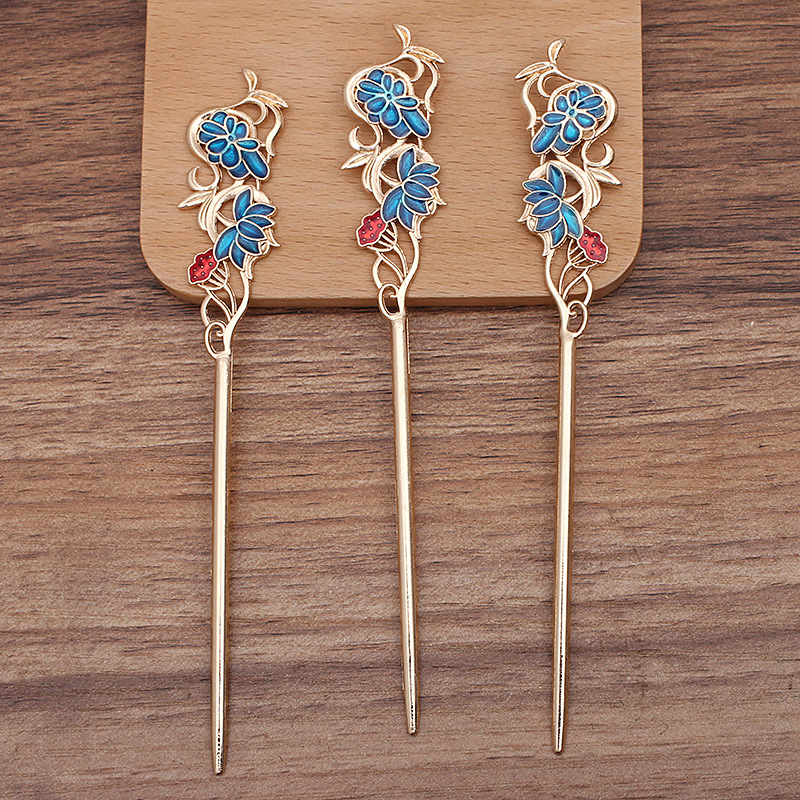 DIY饰品配件古风宫廷头饰步摇合金发簪 双面滴油