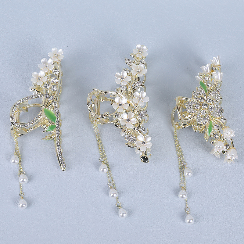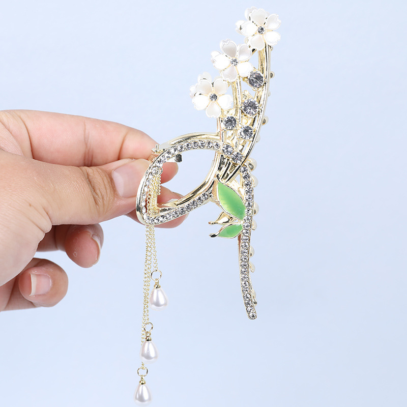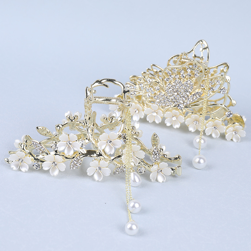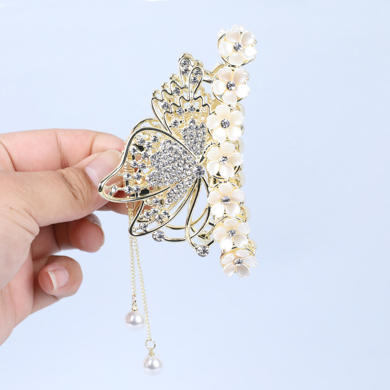蝴蝶流苏古风抓夹水钻鲨鱼夹丸子头抓夹女头饰发饰批发