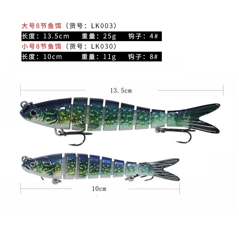 路涵厂家直销仿生多节路亚鱼饵淡海水8节假饵翘嘴鲈鱼鲶鱼大小