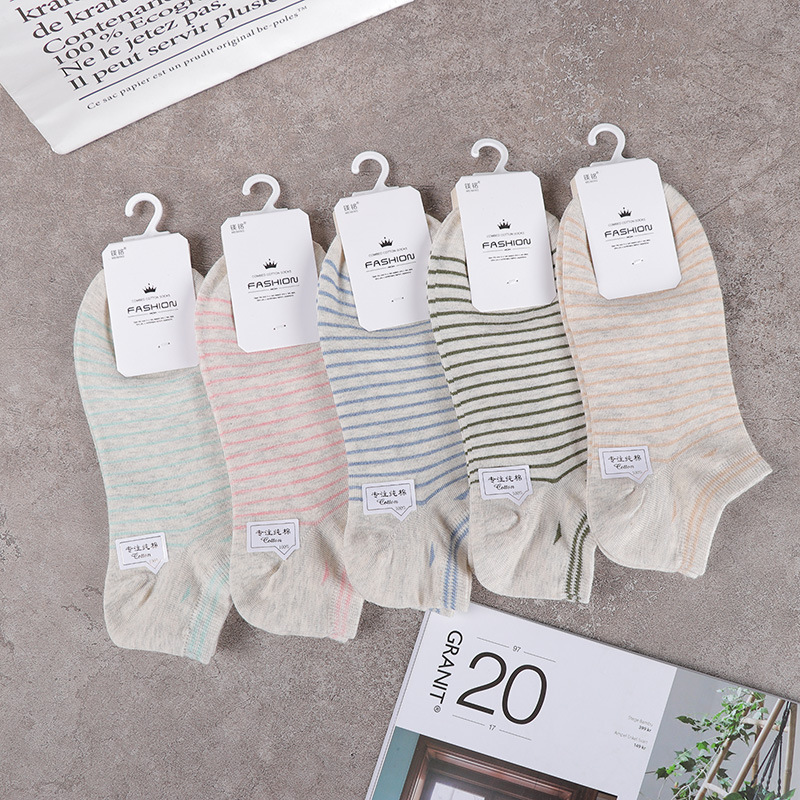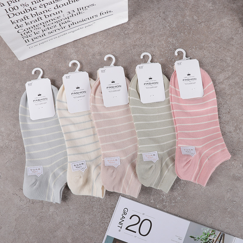 新款袜子女爆款春夏素色小清新日系条纹纯色女船袜 短袜批发