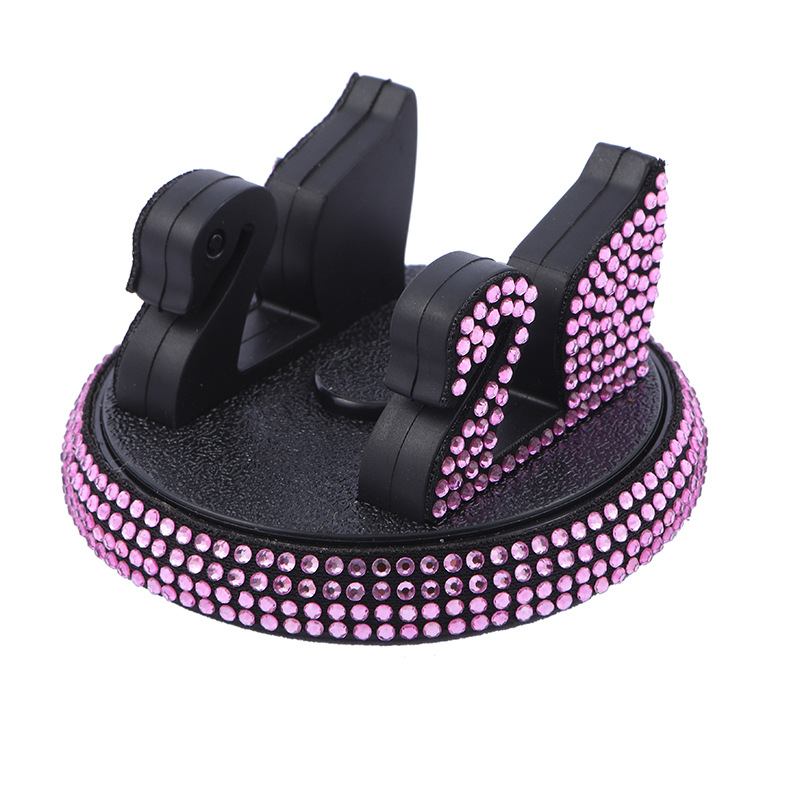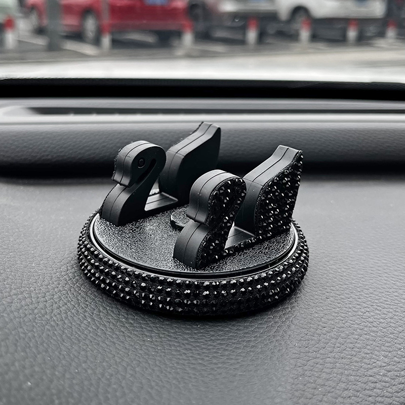 跨境汽车创意镶钻360度天鹅手机支架旋转导航双卡槽卡通车载用品