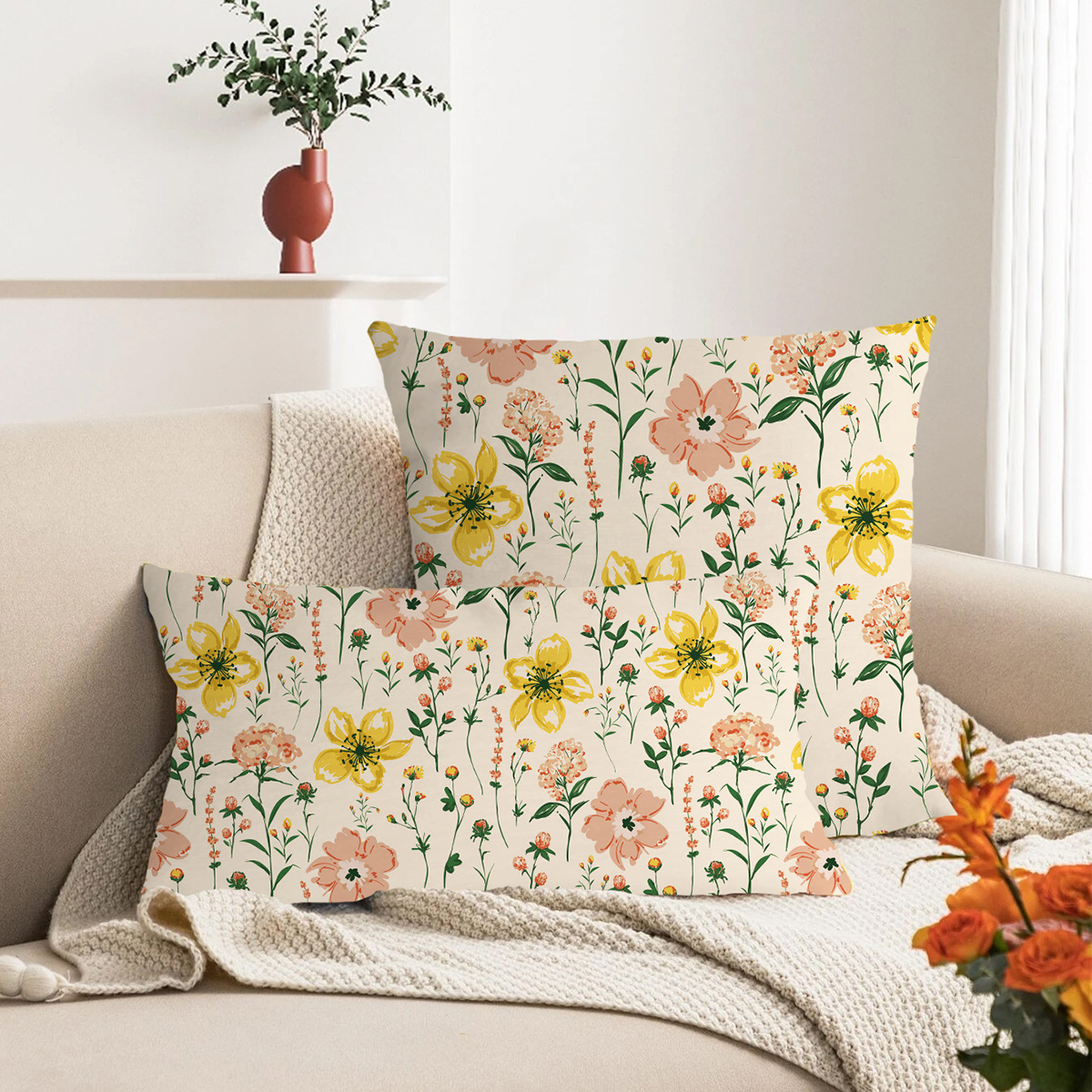 跨境超柔短毛绒植物花卉印花抱枕 腰枕套 礼品印花沙发靠垫