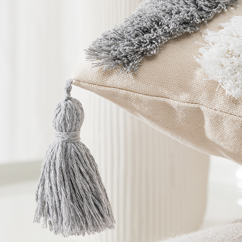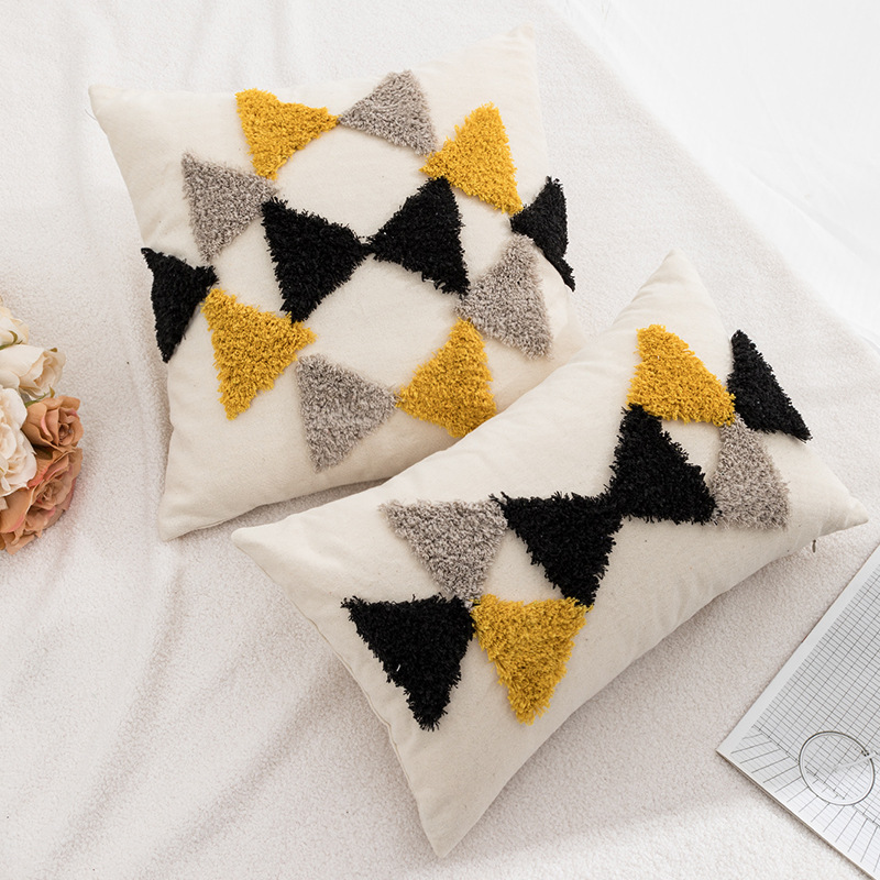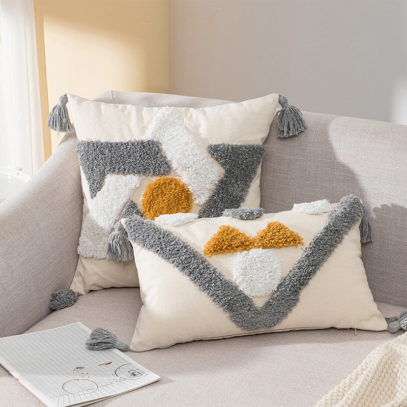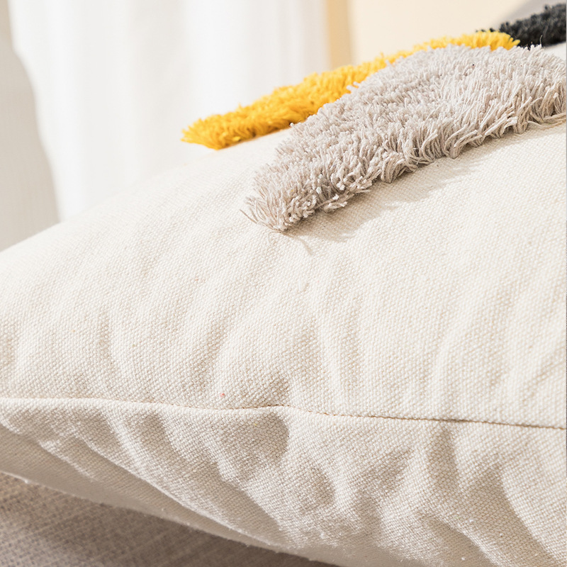 亚马逊跨境帆布美式几何抱枕套簇绒流苏靠枕腰枕办公室座椅靠垫套