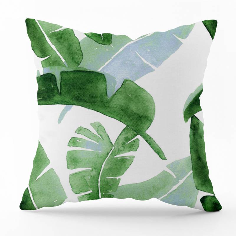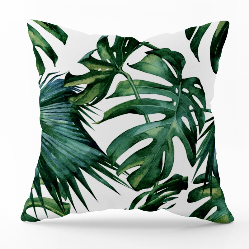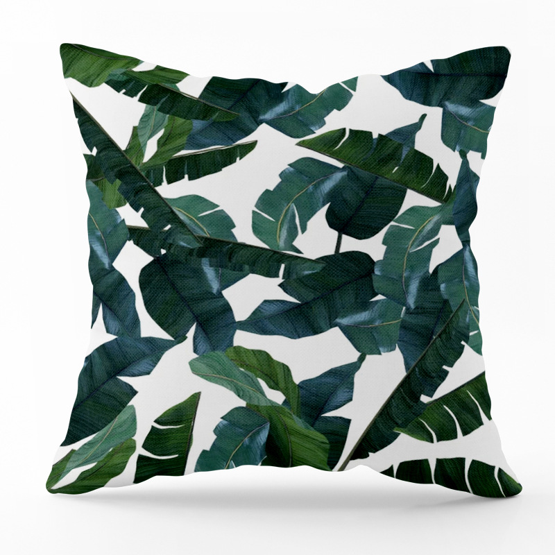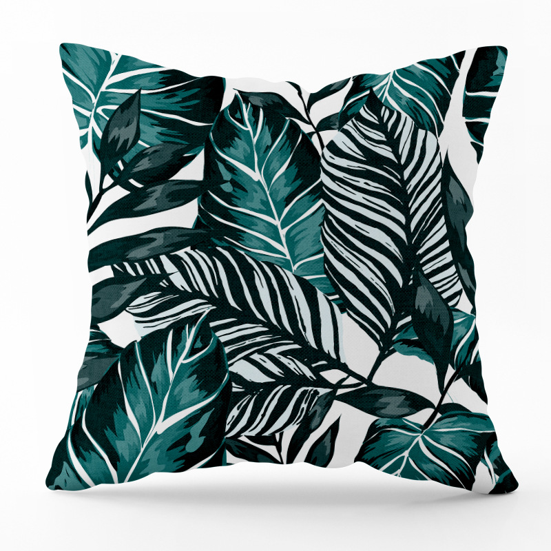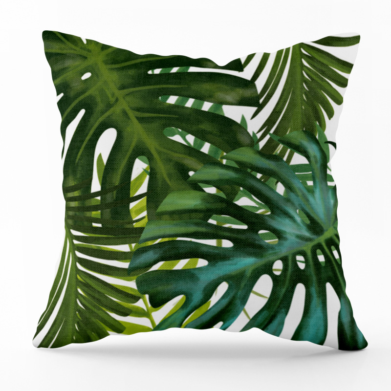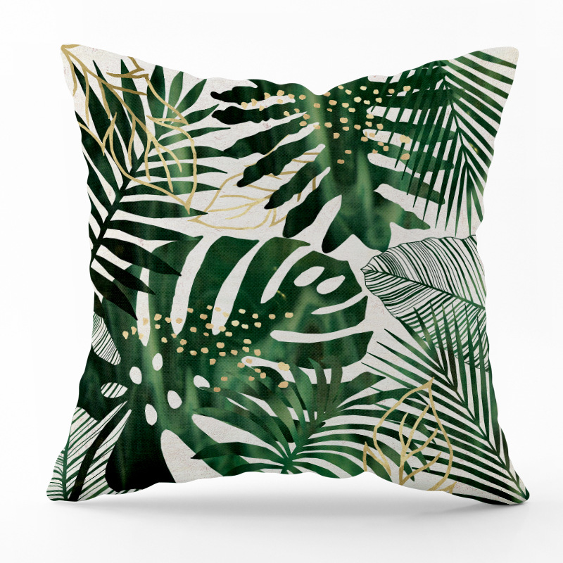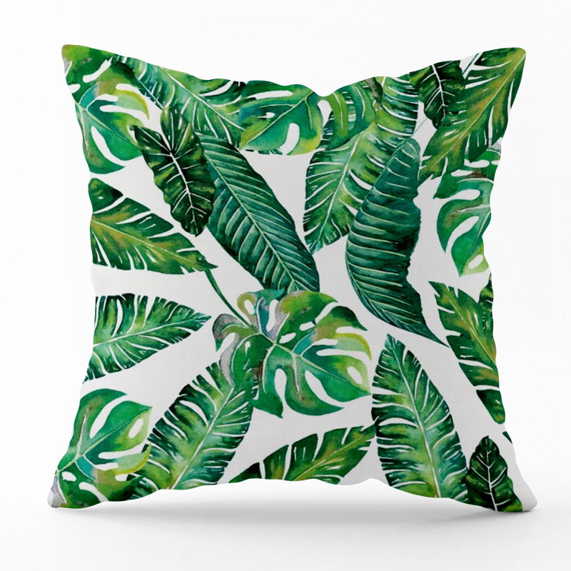 速卖通新款绿色植物抱枕套 沙发靠垫春天绿色花卉绿植枕头套批发