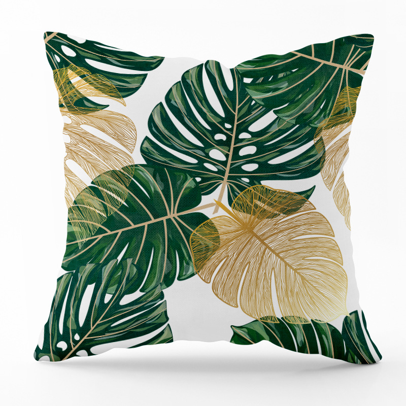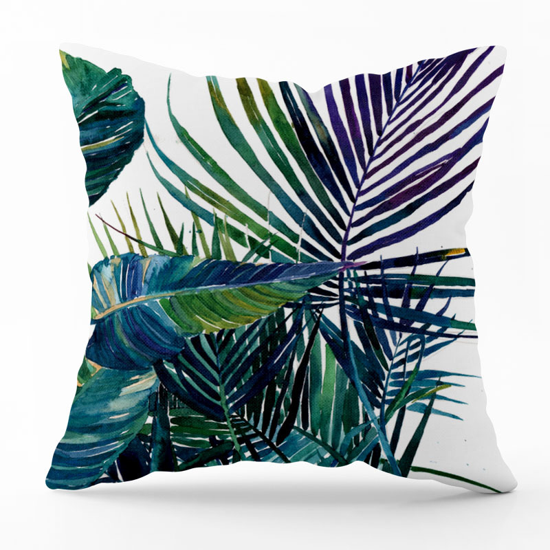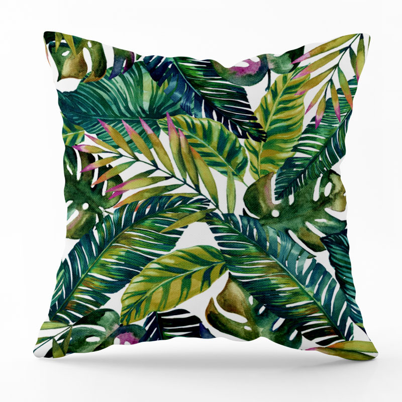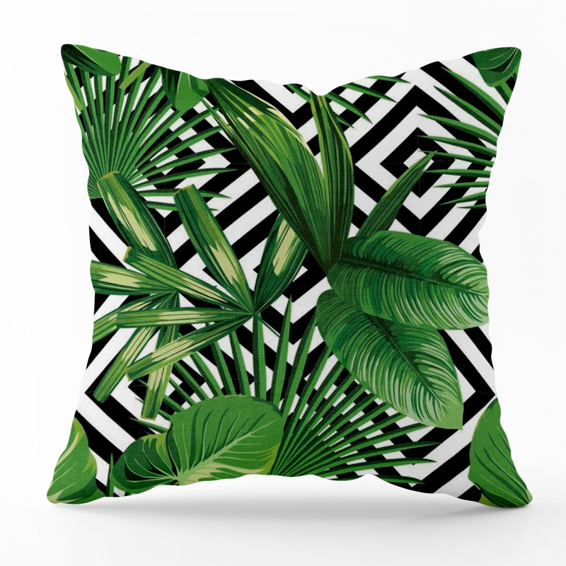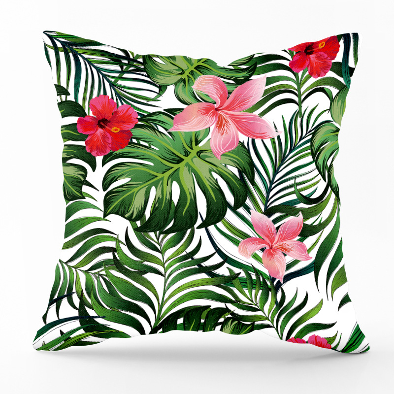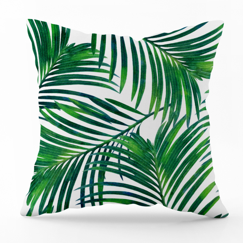 速卖通新款绿色植物抱枕套 沙发靠垫春天绿色花卉绿植枕头套批发
