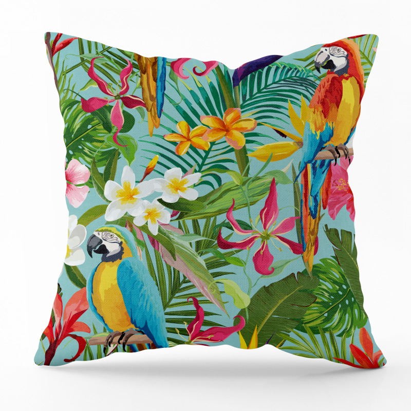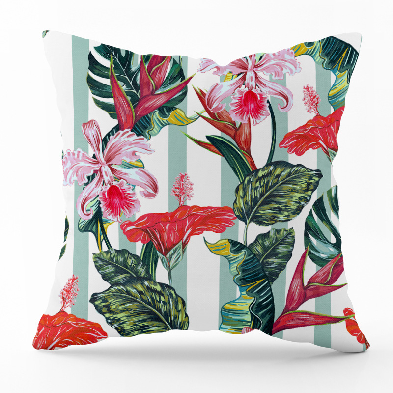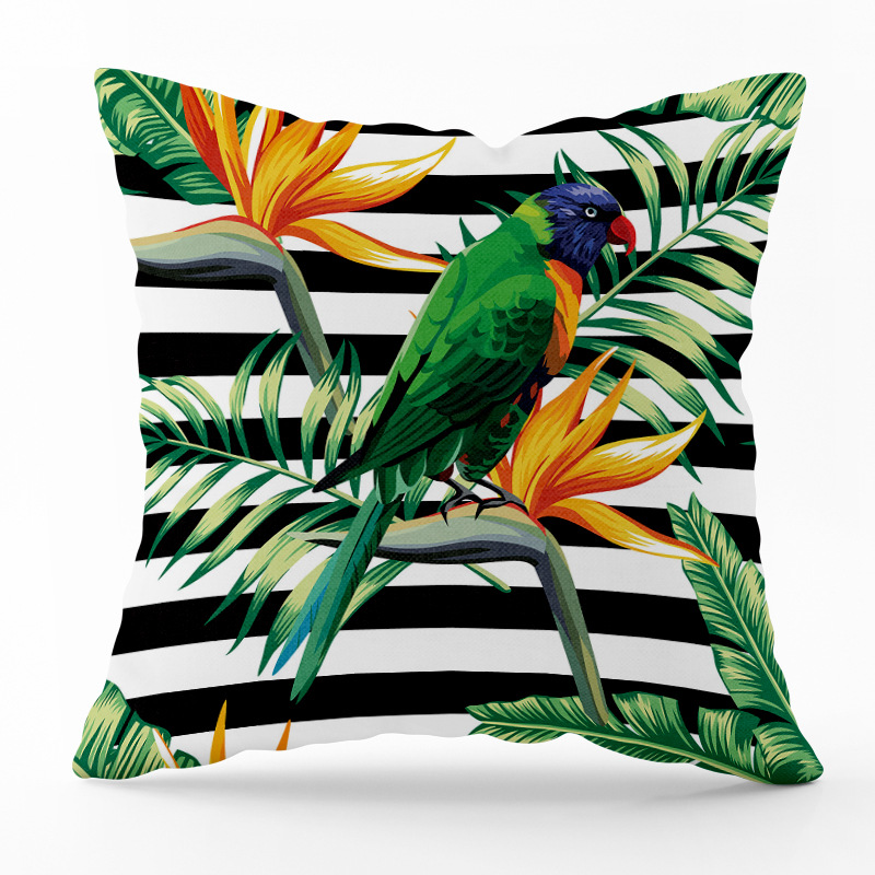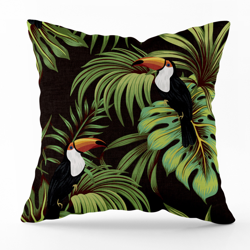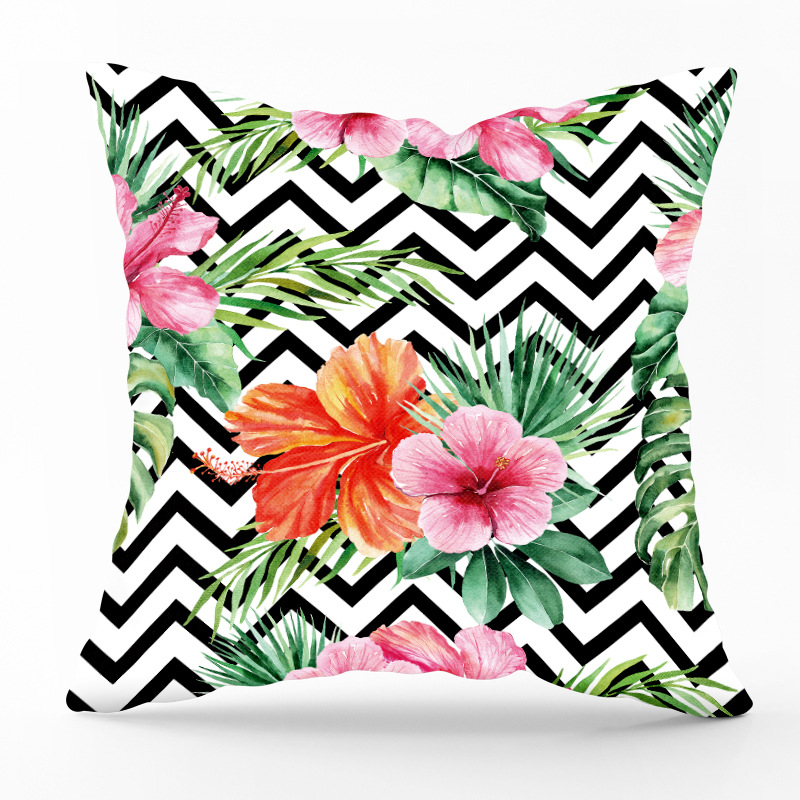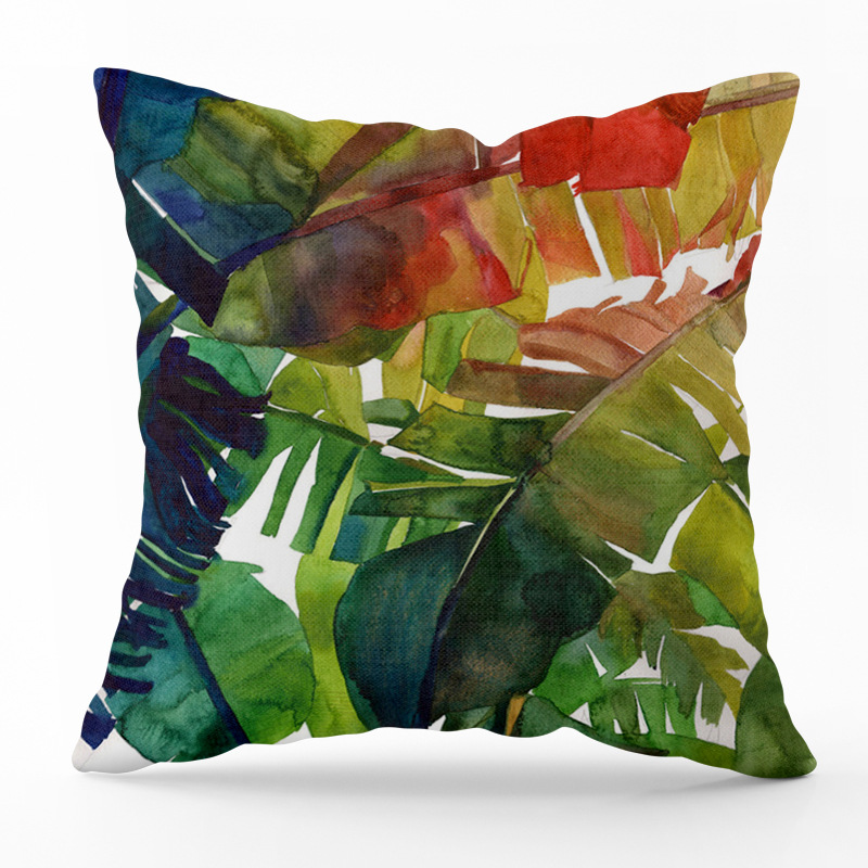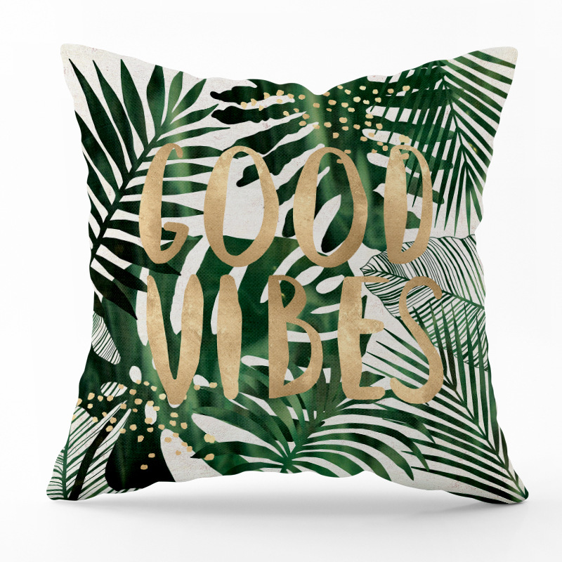 速卖通新款绿色植物抱枕套 沙发靠垫春天绿色花卉绿植枕头套批发