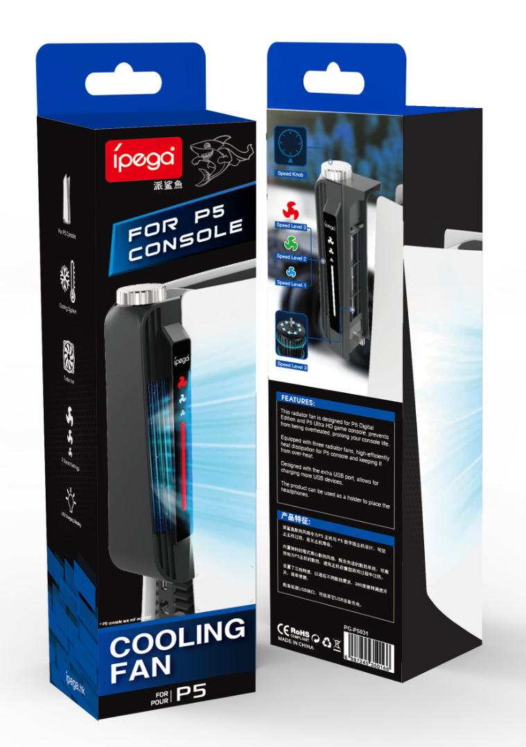 1.本产品采用离心式风扇构造,强力降温,仅适用于P5 主机散热。 2.通过旋扭开关控制散热风扇转速,操作便捷。 3.具备风扇档位指示灯,实时指示散热风力大小。 4.散热风扇可工作在3种不同的转速状态,提供3档不同风力。 5.具备一个扩展USB接口。