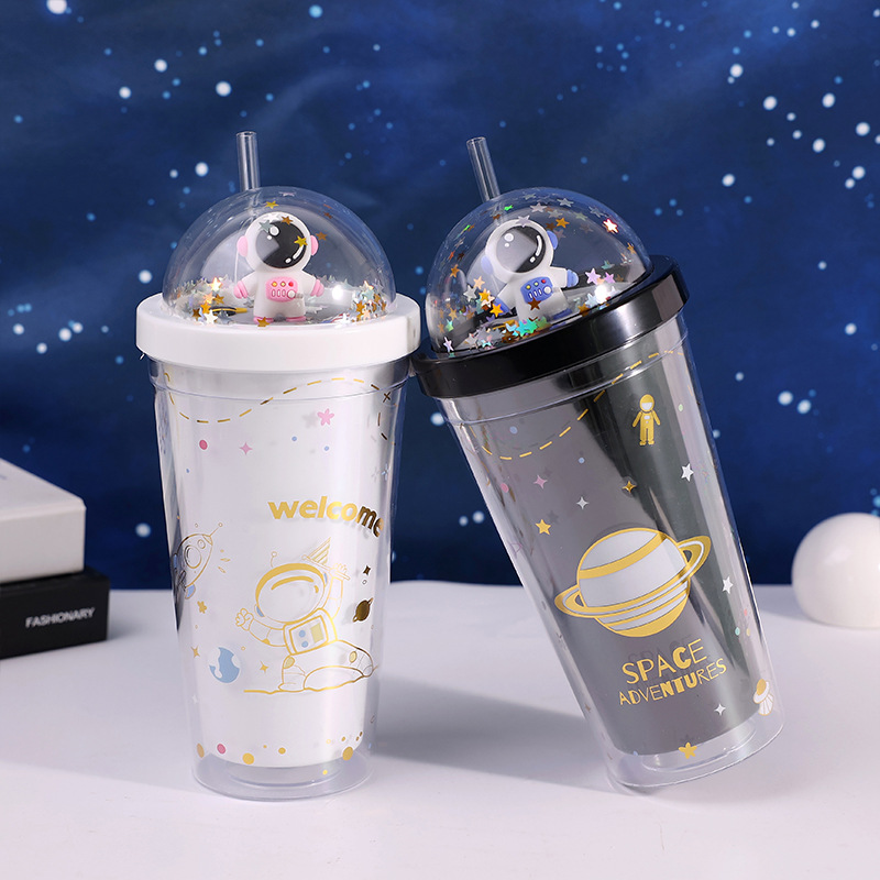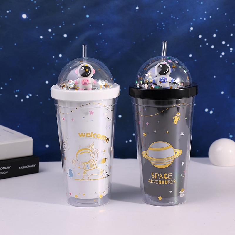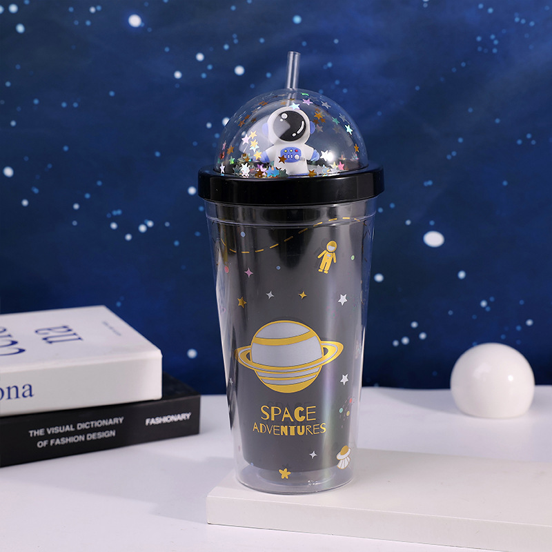儿童个性星空塑料水杯可爱高颜值学生户外便携太空饮用吸管网红杯