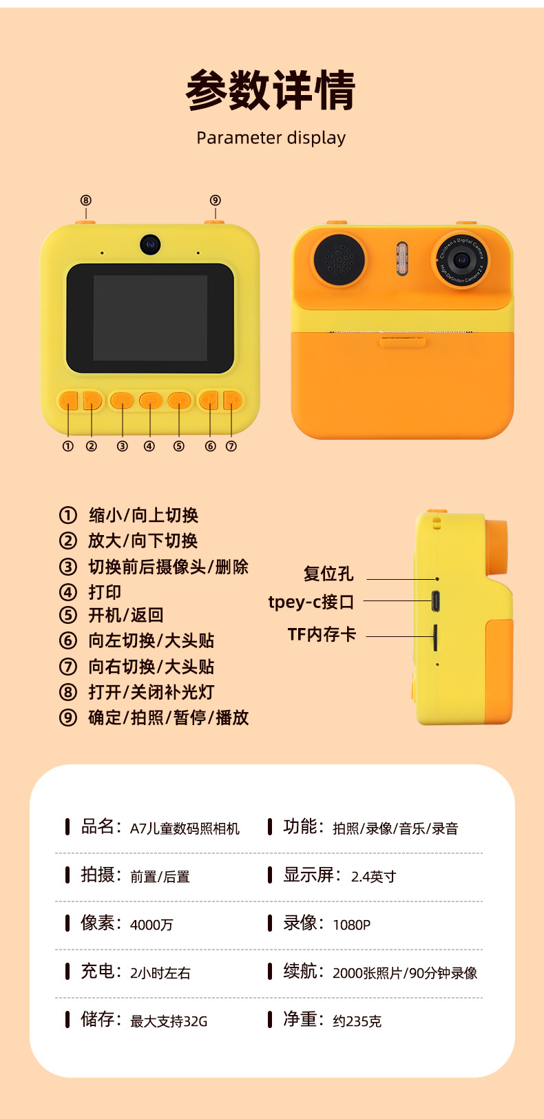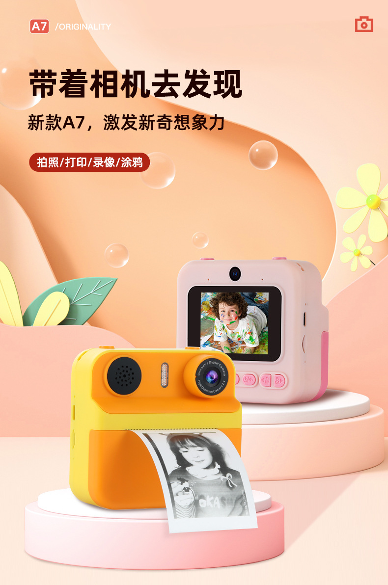 跨境新款儿童相机拍立得打印数码相机生日节日礼品1080P
