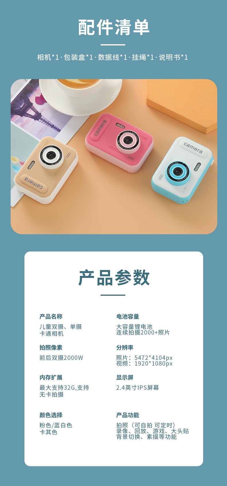新款跨境儿童数码迷你相机玩具益智类生日节日礼品相机大屏高清