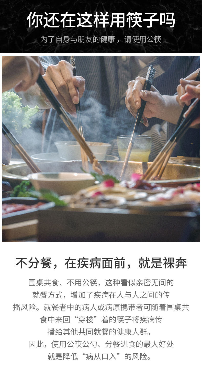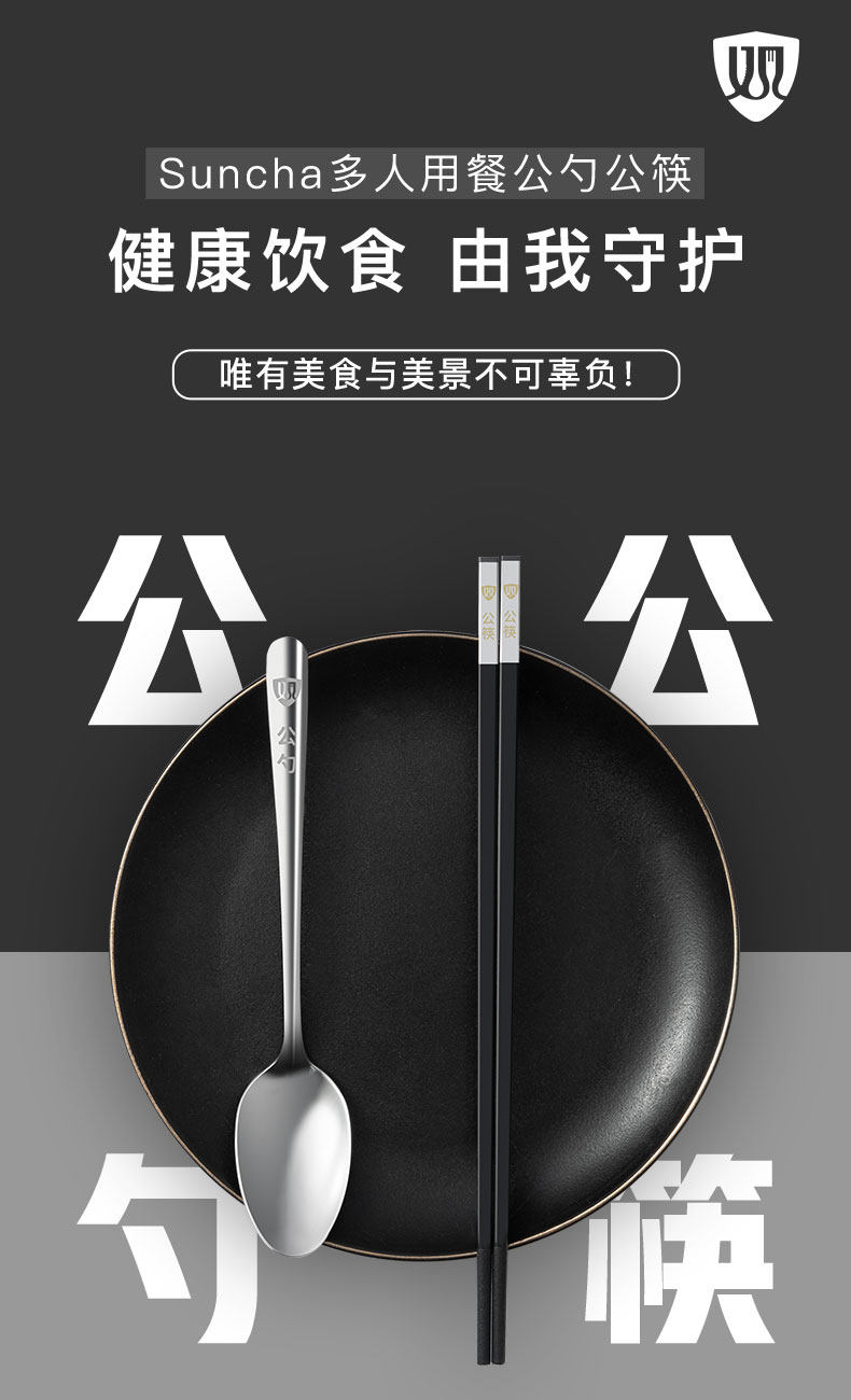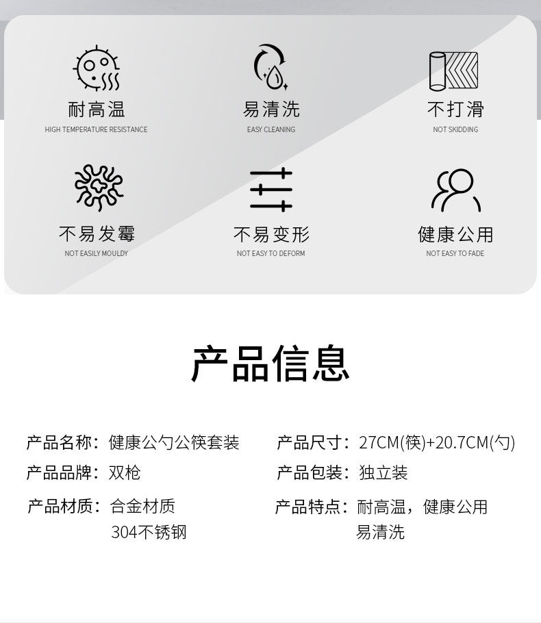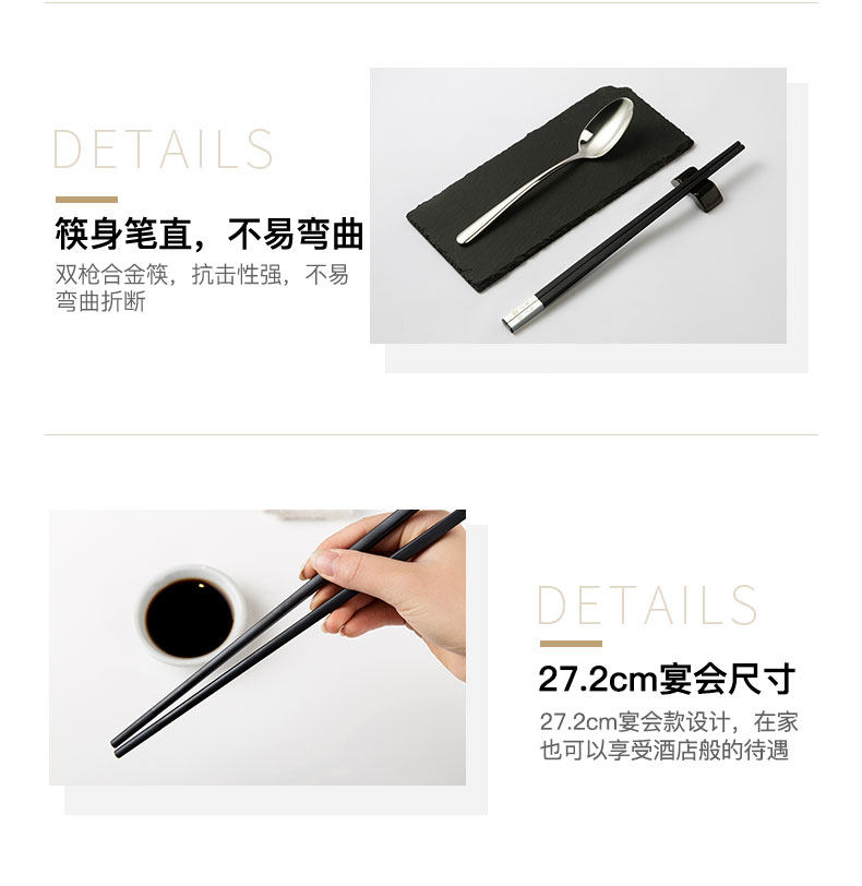 双枪合金公筷子家用加长餐厅公勺商用防滑不易发霉家庭专用长筷子