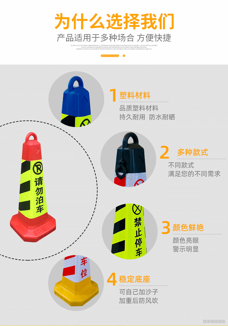 禁止停车桩警示牌塑料反光路锥请勿泊车告示牌交通雪糕筒桶路障柱