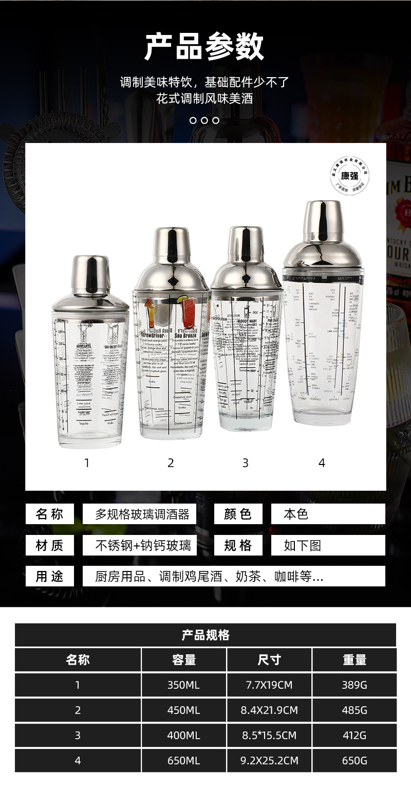 批发酒吧工具不锈钢调酒器全套雪克杯套装奶茶专用调酒器带刻度