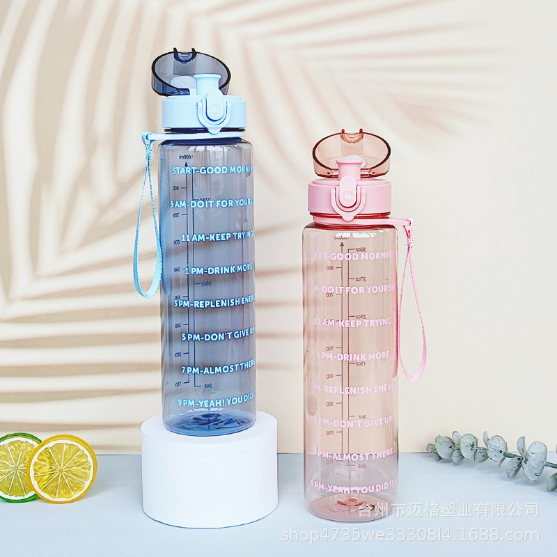 水杯运动水壶耐高温时间刻度吸管杯磨砂渐变杯子水杯塑料的批发