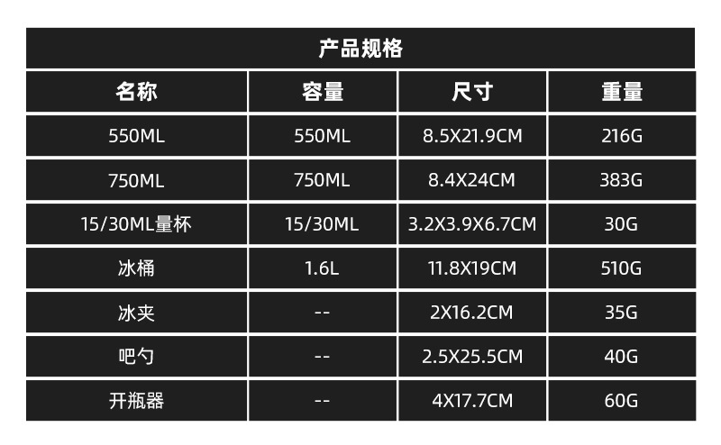 酒吧工具调酒器不锈钢调酒套装手摇不锈钢壶摇酒壶鸡尾酒摇酒壶