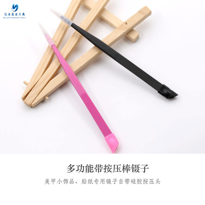 美甲多功能镊子双头带硅胶按压棒贴花合金钻饰品钻石夹手账工具