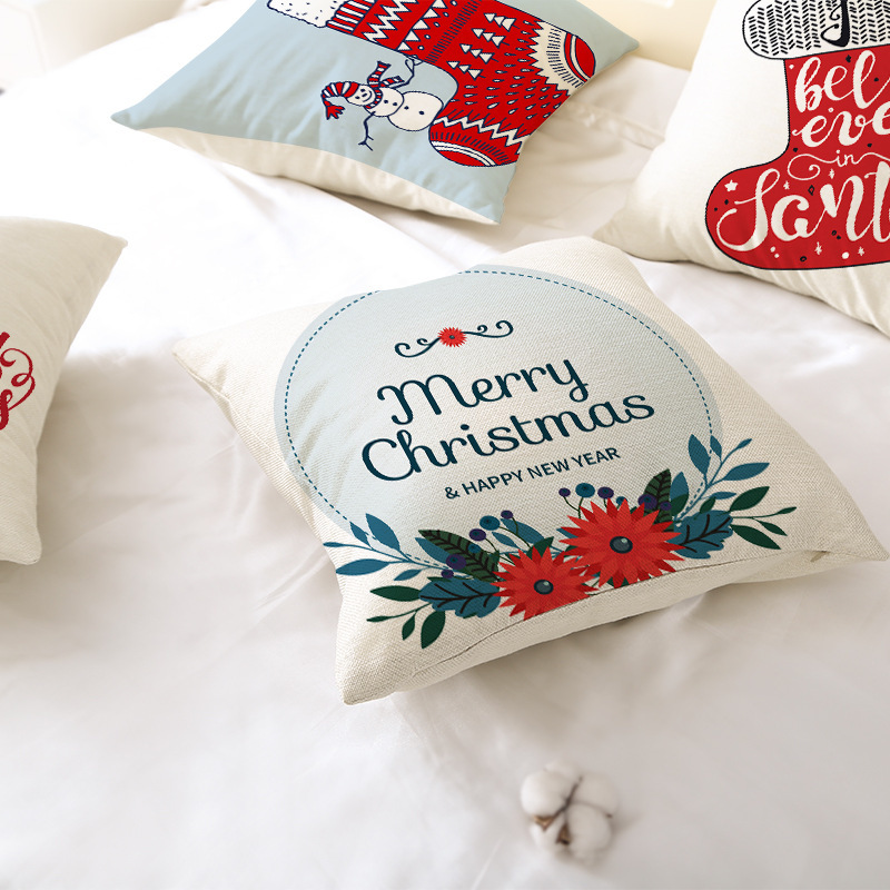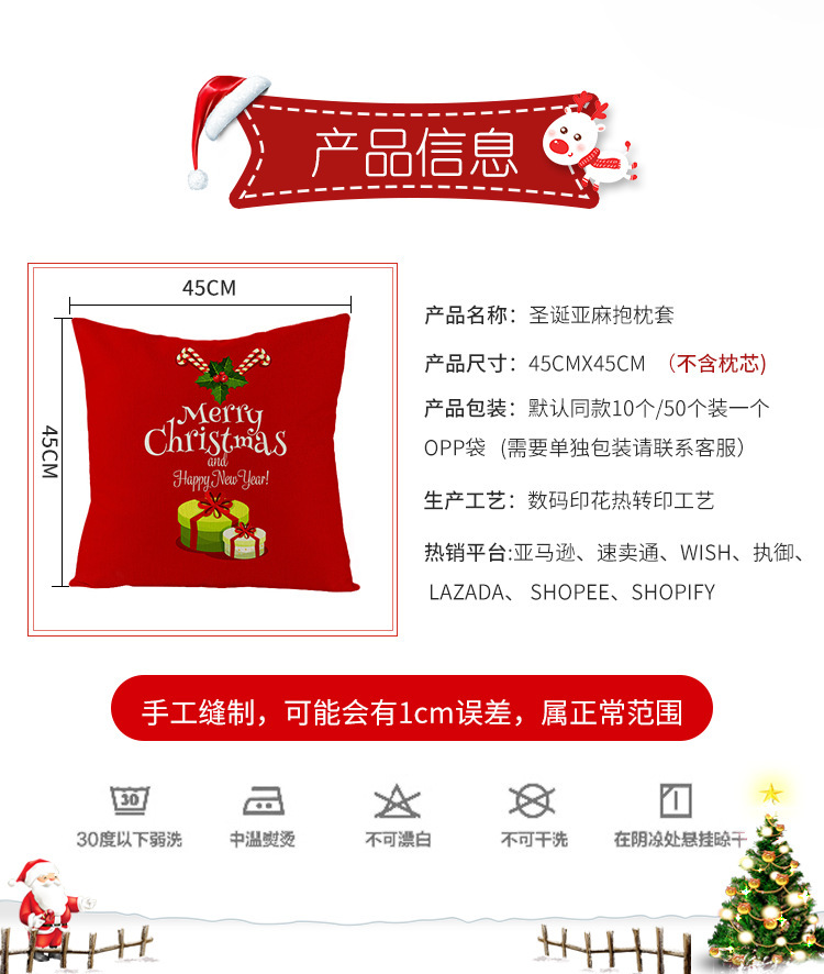 亚马逊爆款家居装饰品2025新款圣诞节抱枕套办公室红色亚麻靠枕套