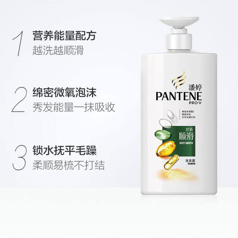 潘婷洗发水750ml丝质顺滑去屑乳液丝质强韧养根洗发露 劳保批发。