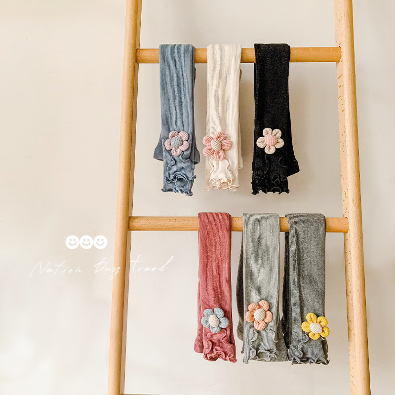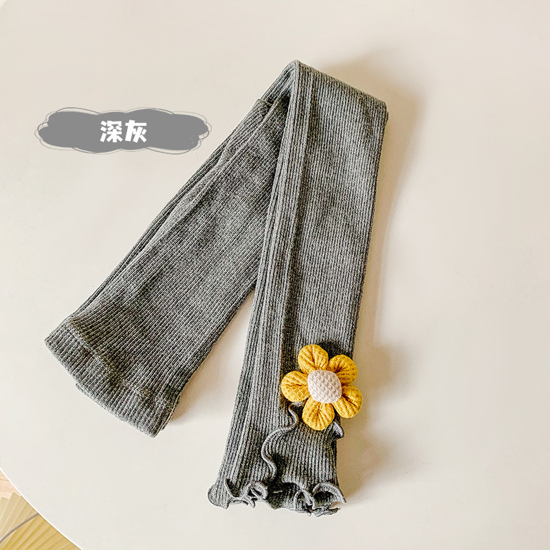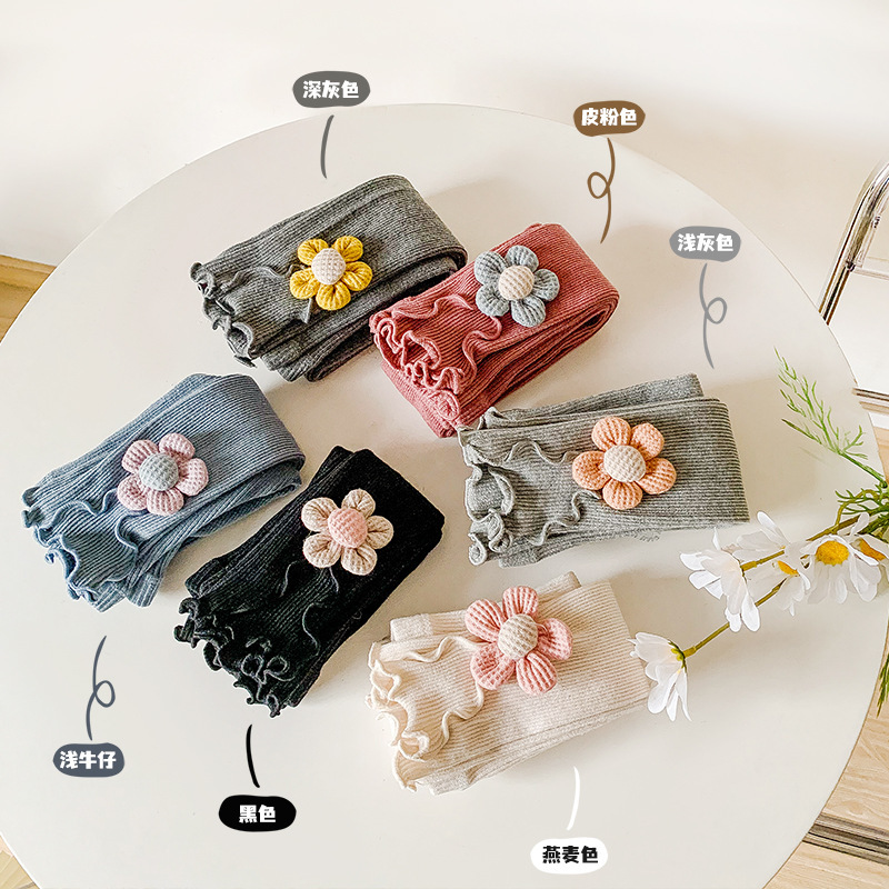 女童打底裤秋冬新款韩版太阳花儿童打底裤 木耳边罗口女童连裤袜