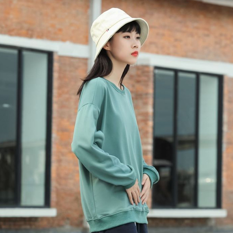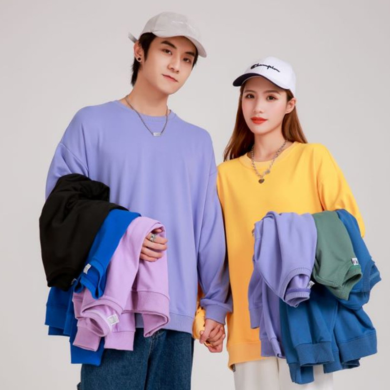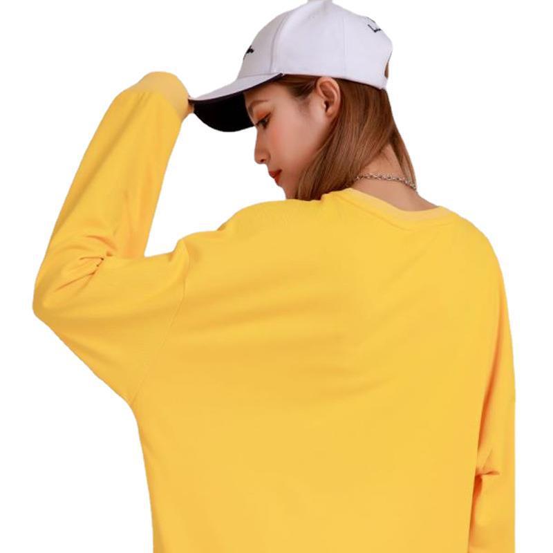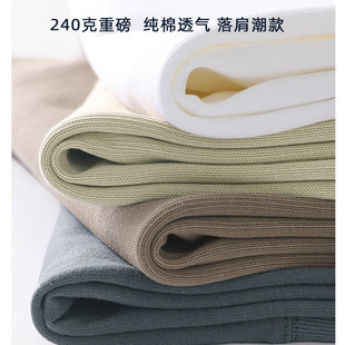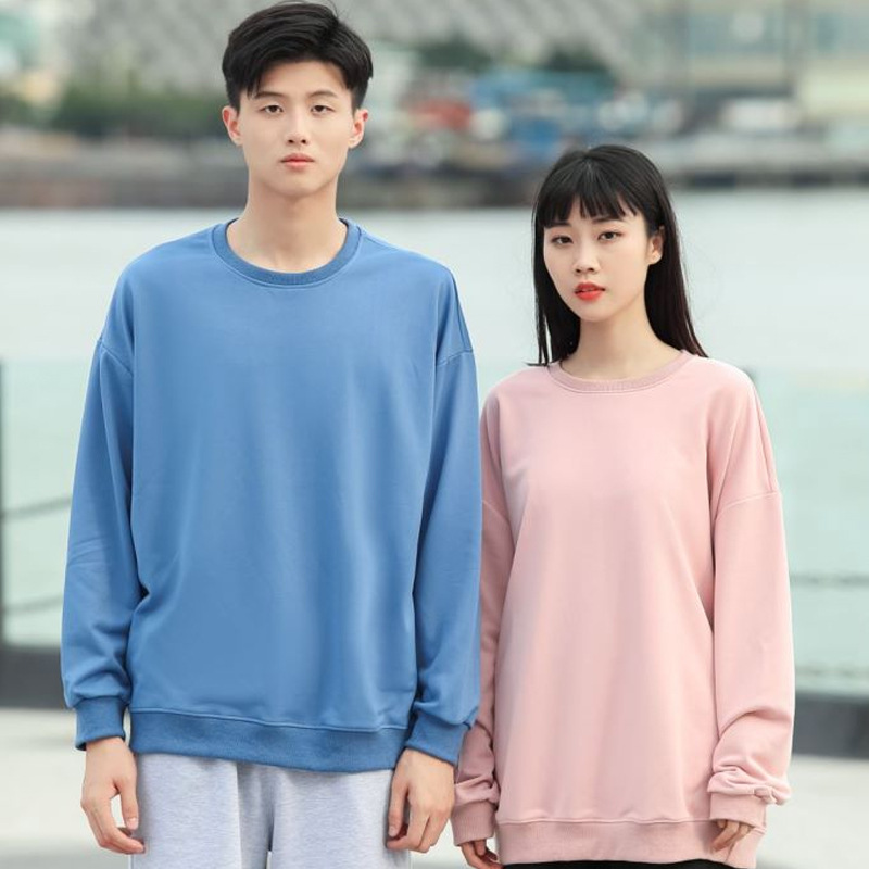 跨境宽松落肩全棉圆领卫衣外贸长袖T恤男女通款一件印图印LOGO