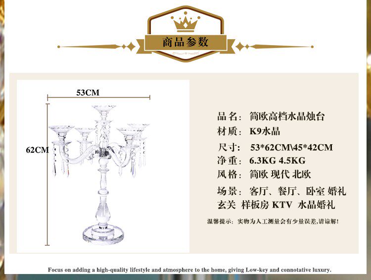 水晶烛台简约婚庆婚礼摆件北欧浪漫餐厅烛光晚餐道具烛台家用