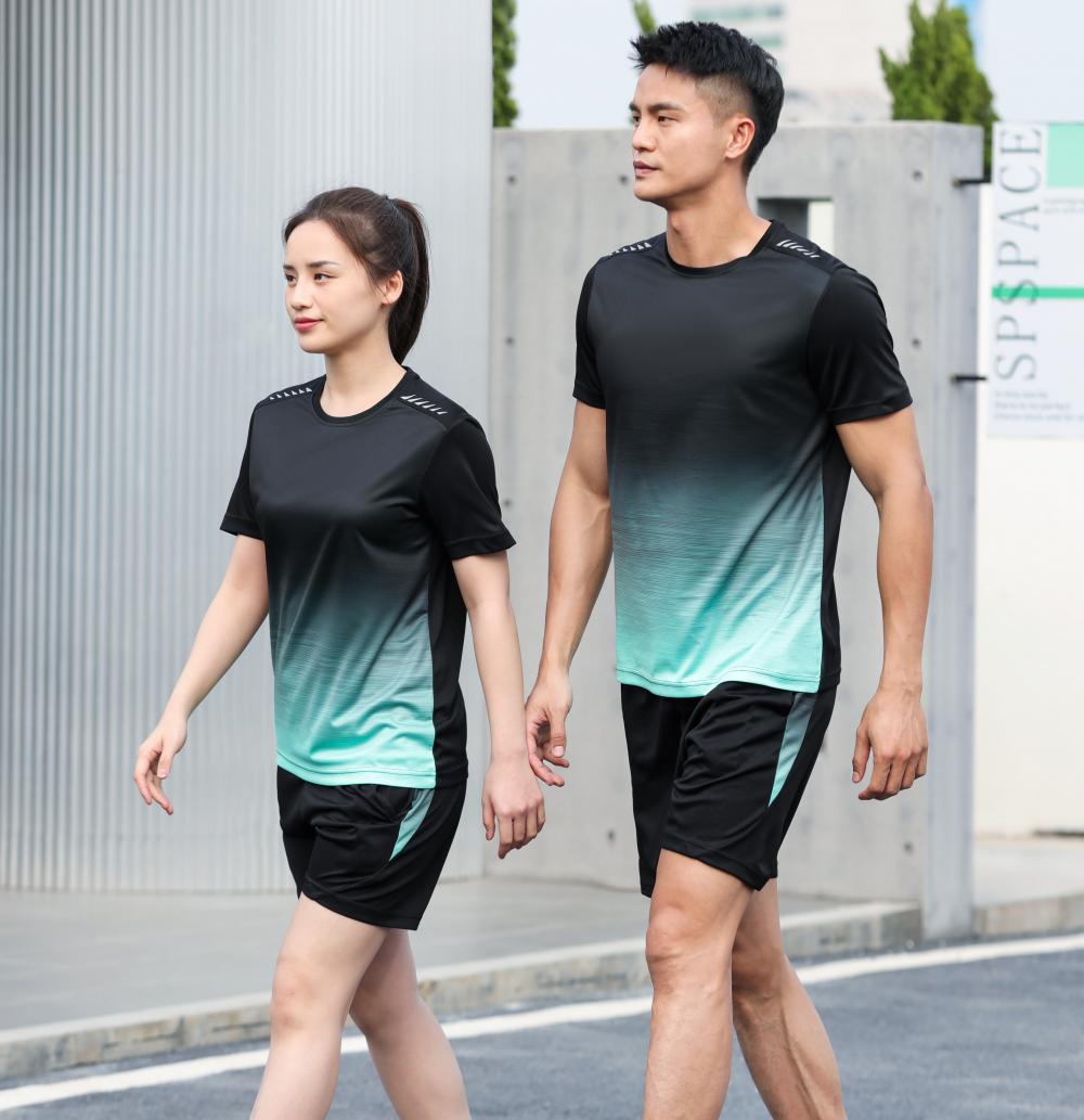 夏季情侣休闲套装运动套装全套男士健身T恤短袖户外速干男装衣服