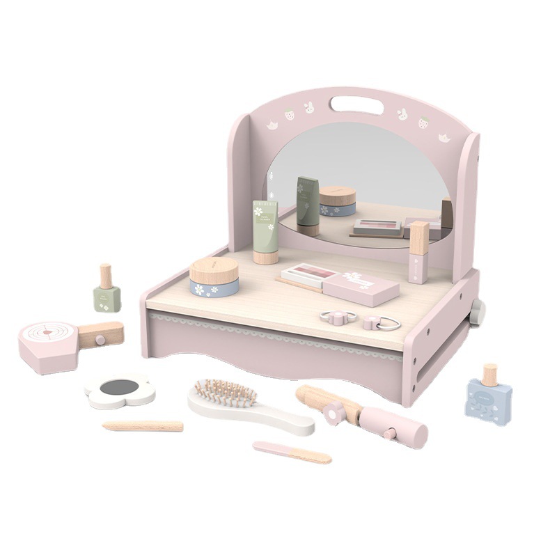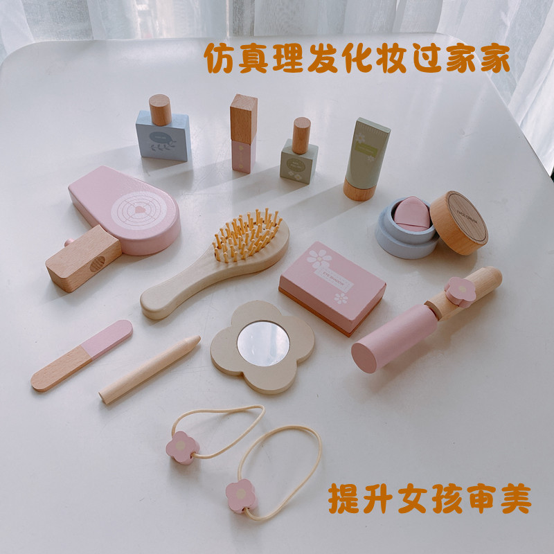 木制女孩过家家梳妆台仿真化妆套装口红眼影吹风机玩具女宝宝礼物
