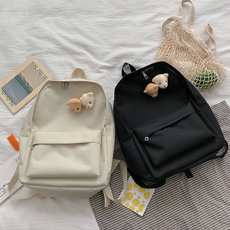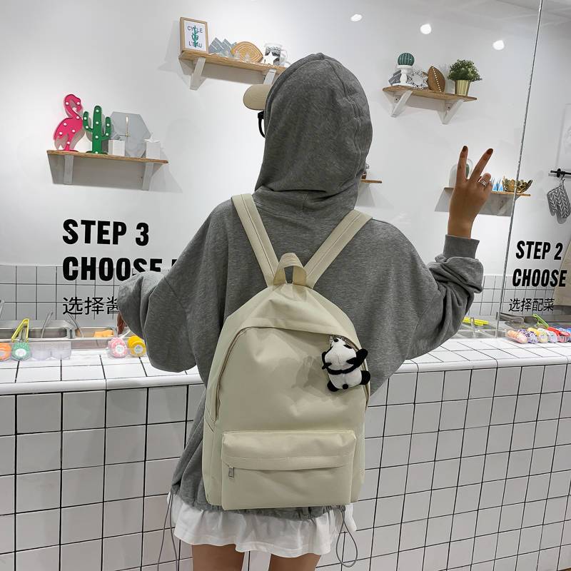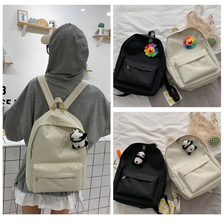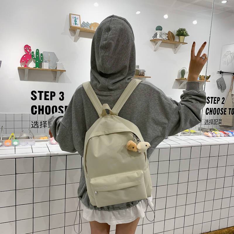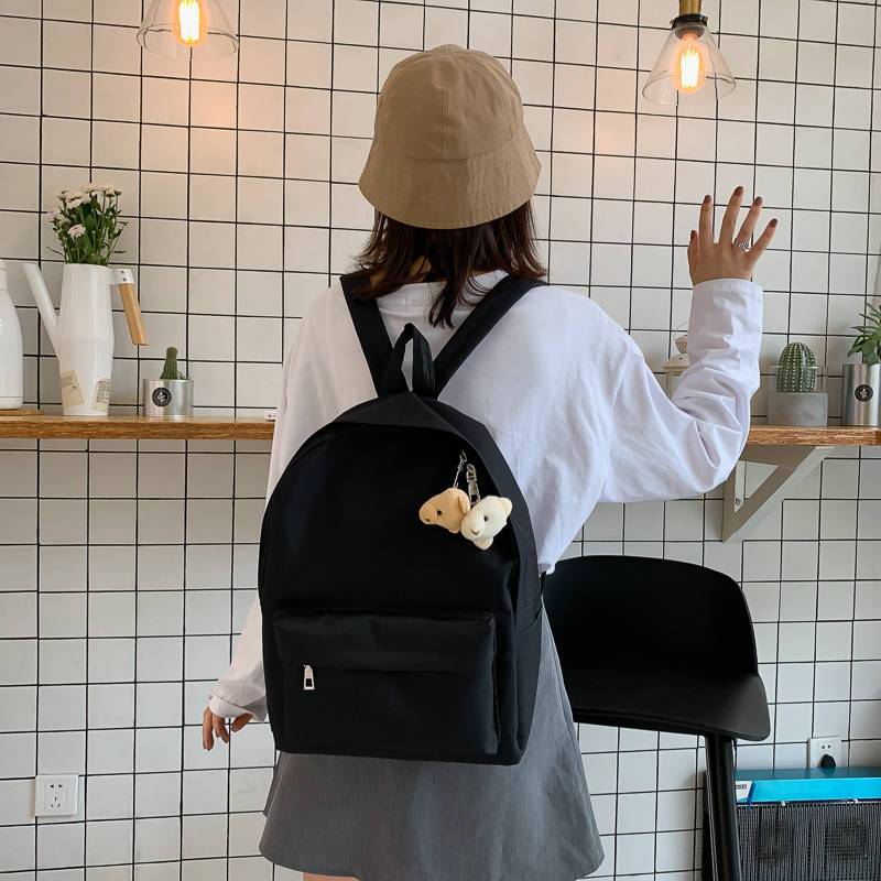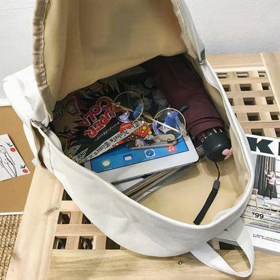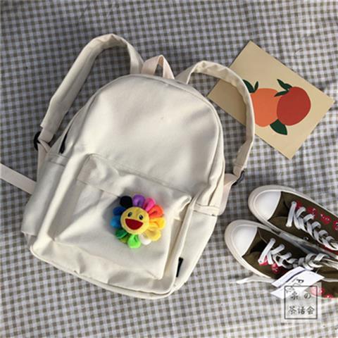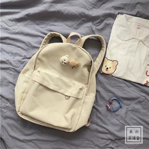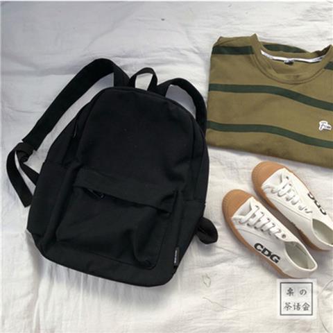 日系简约百搭校园背包韩版ins学院风学生双肩包女chic帆布书包女