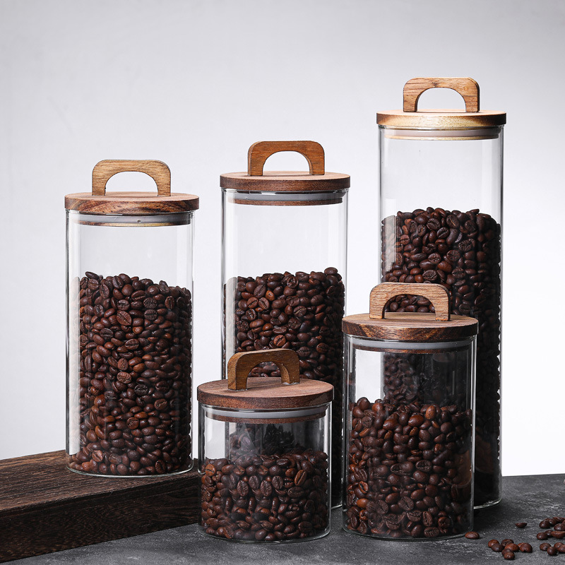 相思木盖玻璃储物罐透明储藏收纳罐食品咖啡豆茶叶密封罐
