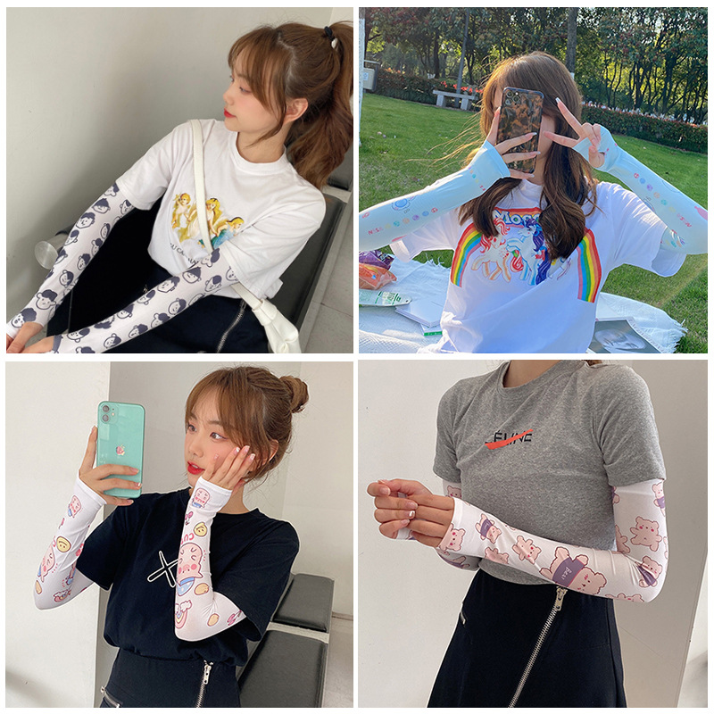 冰袖防晒女护臂ins可爱百搭冰丝手套夏季新款户外手臂套薄款袖套