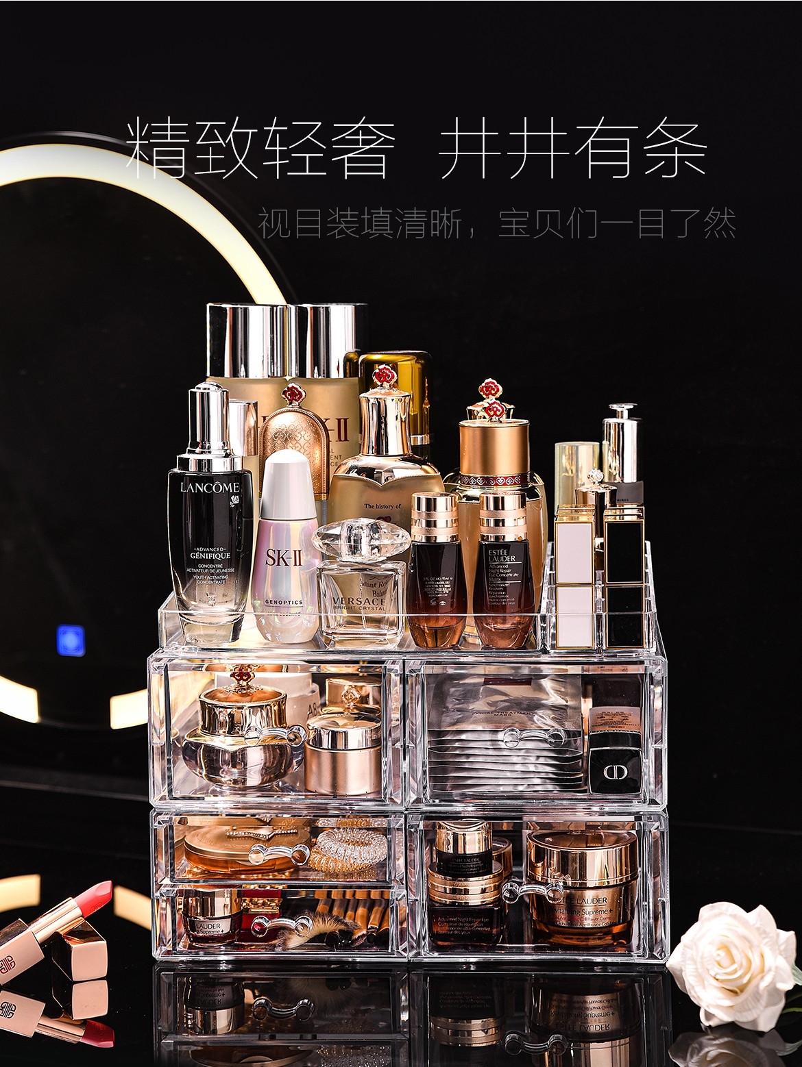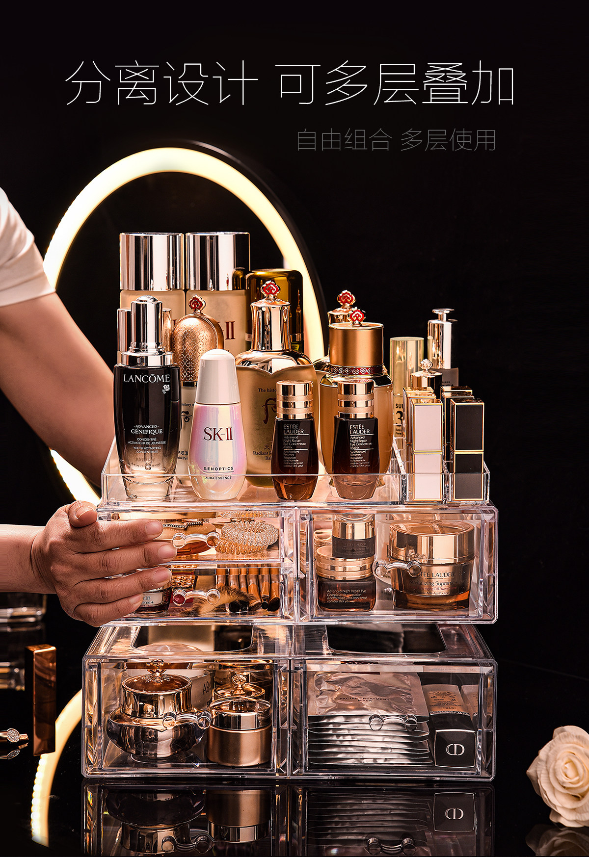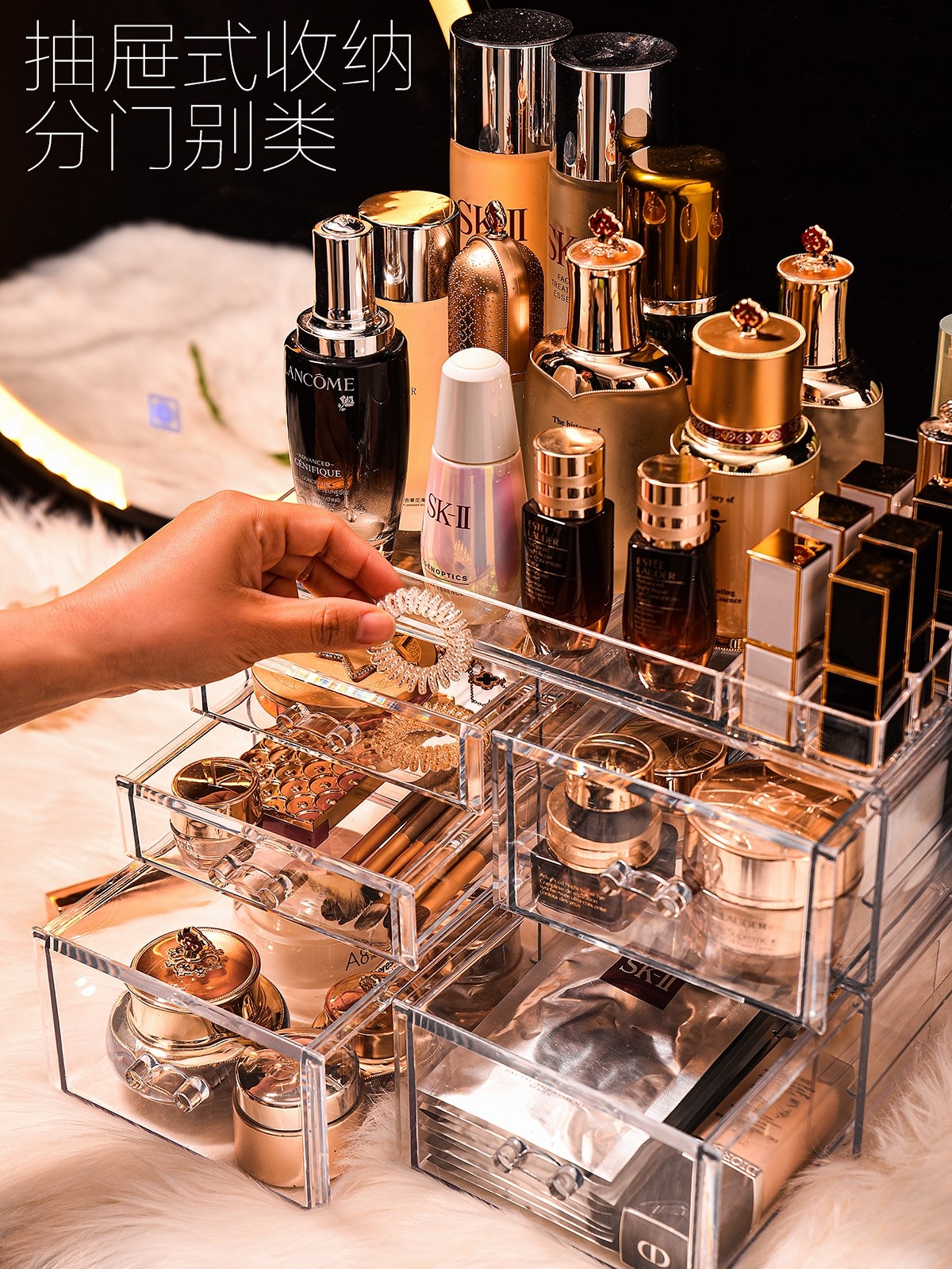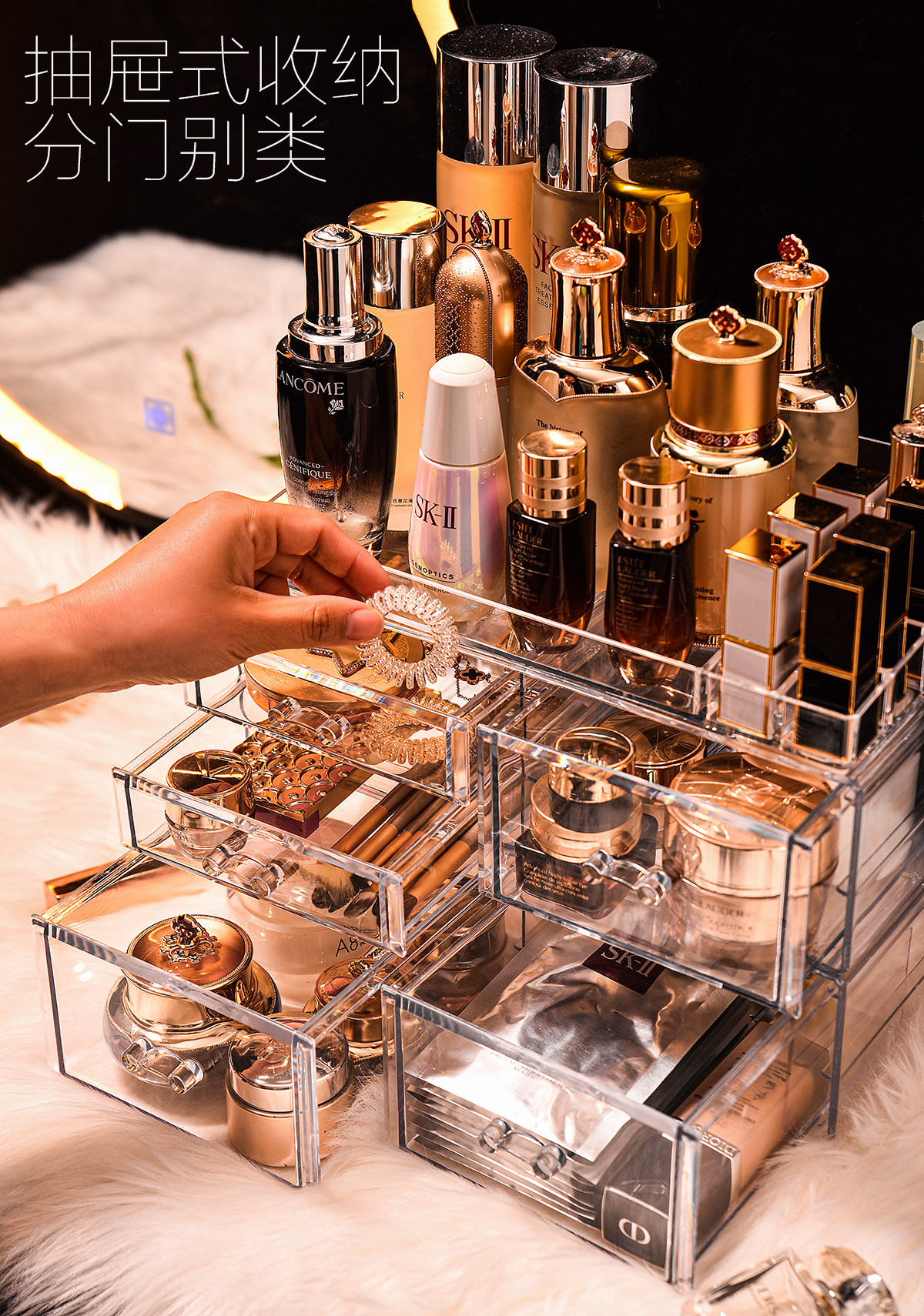 桌面抽屉式亚克力透明化妆品收纳盒大号梳妆台塑料护肤整理置物架