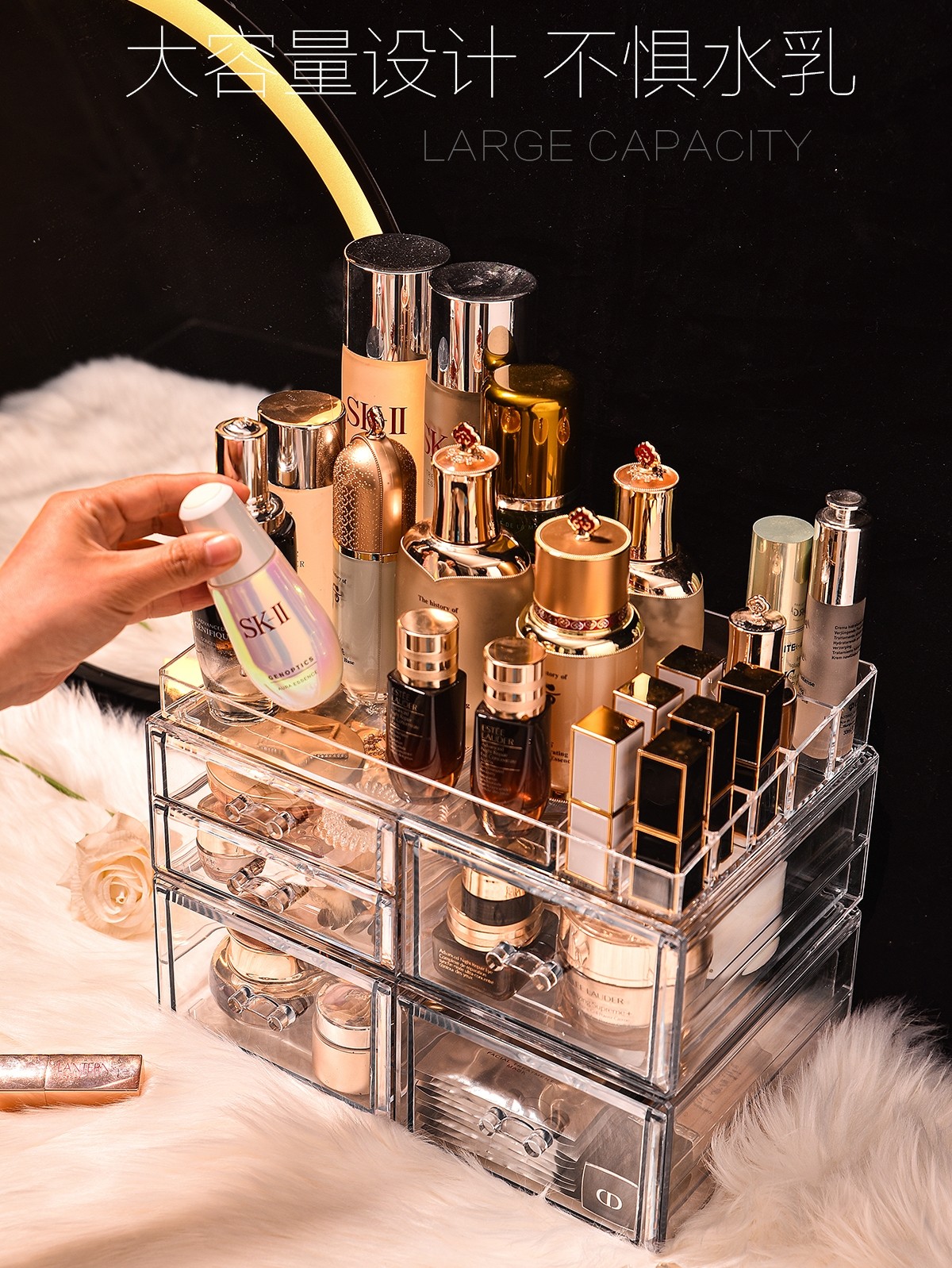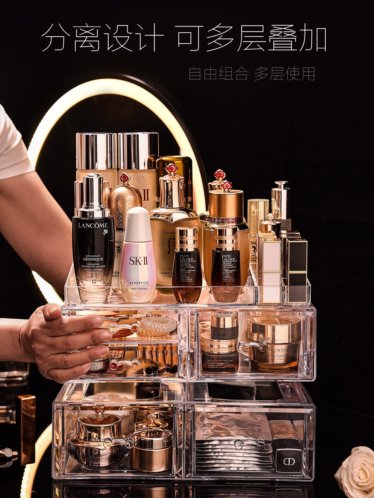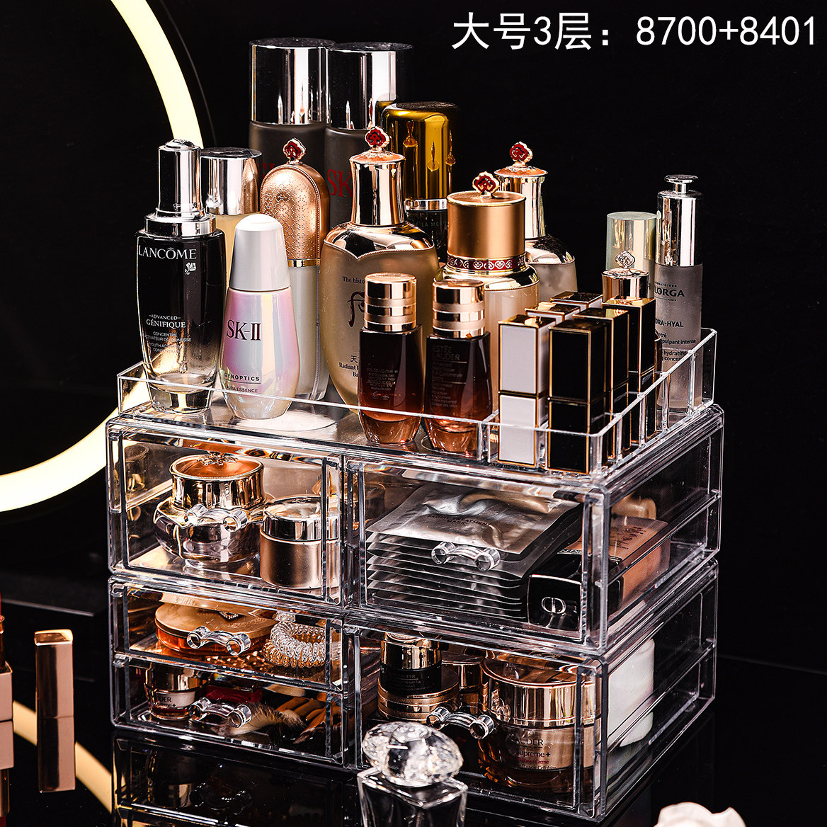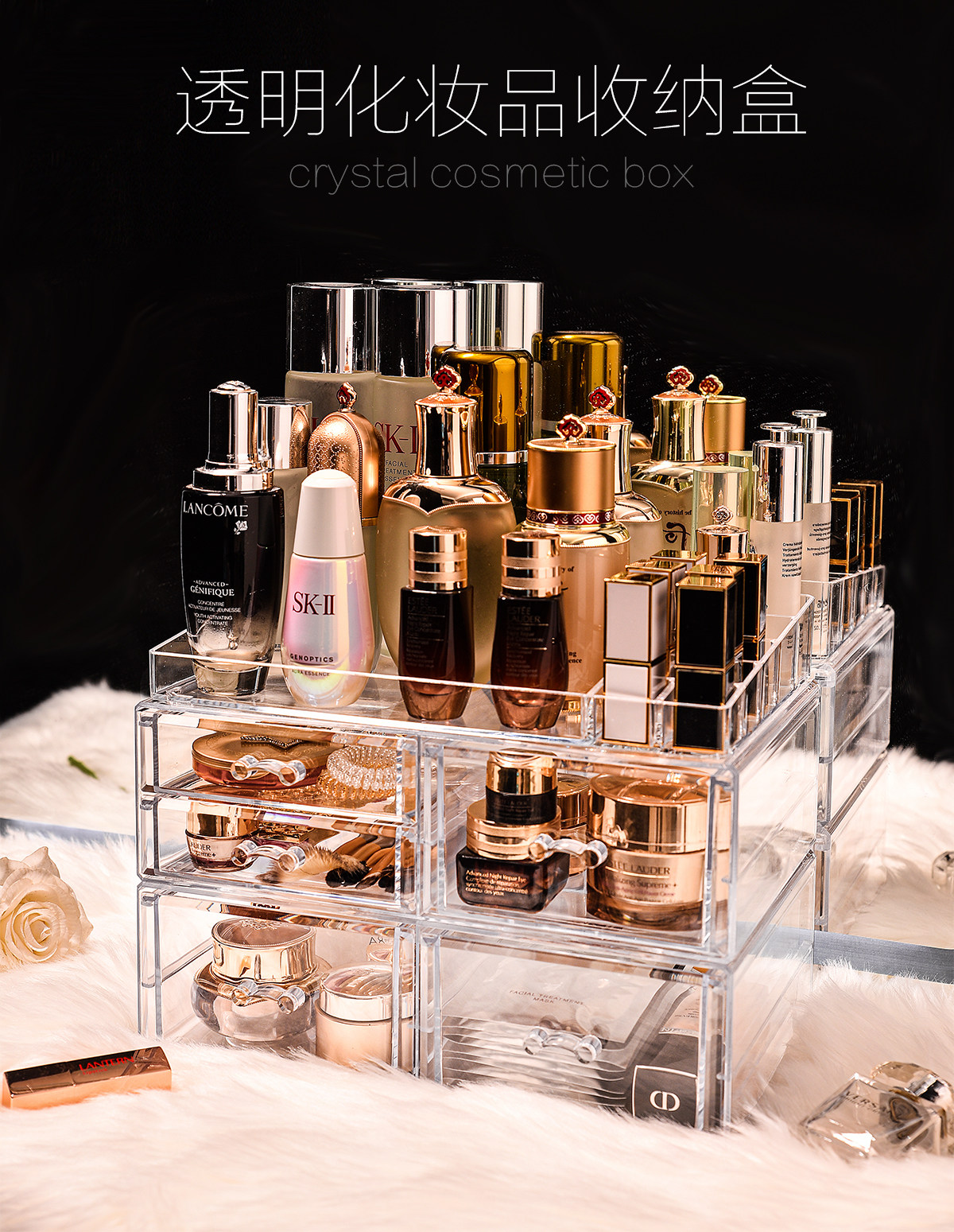 桌面抽屉式亚克力透明化妆品收纳盒大号梳妆台塑料护肤整理置物架