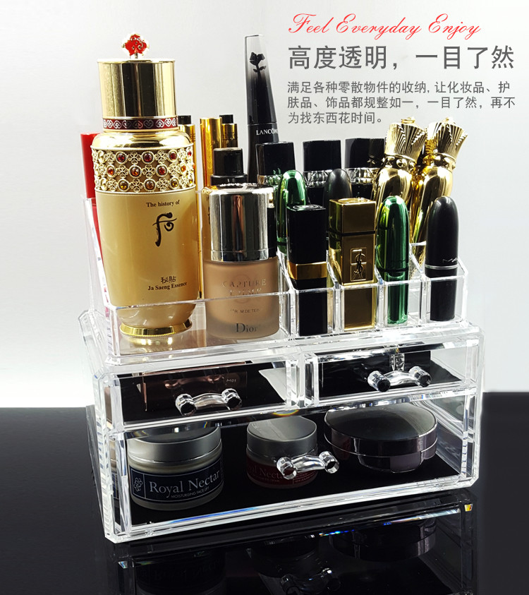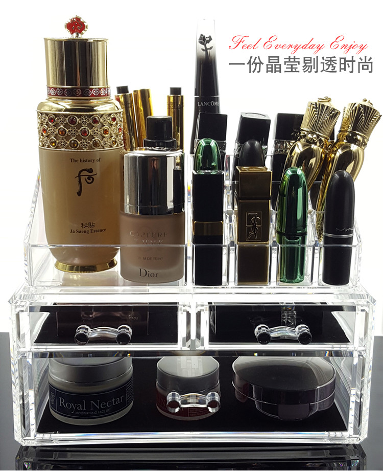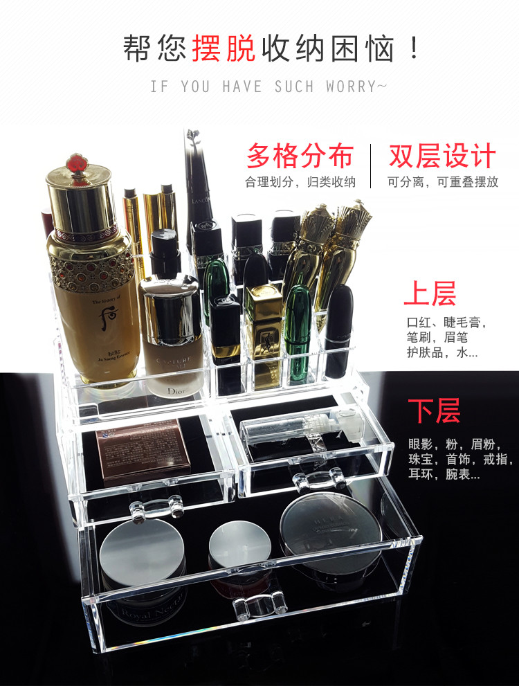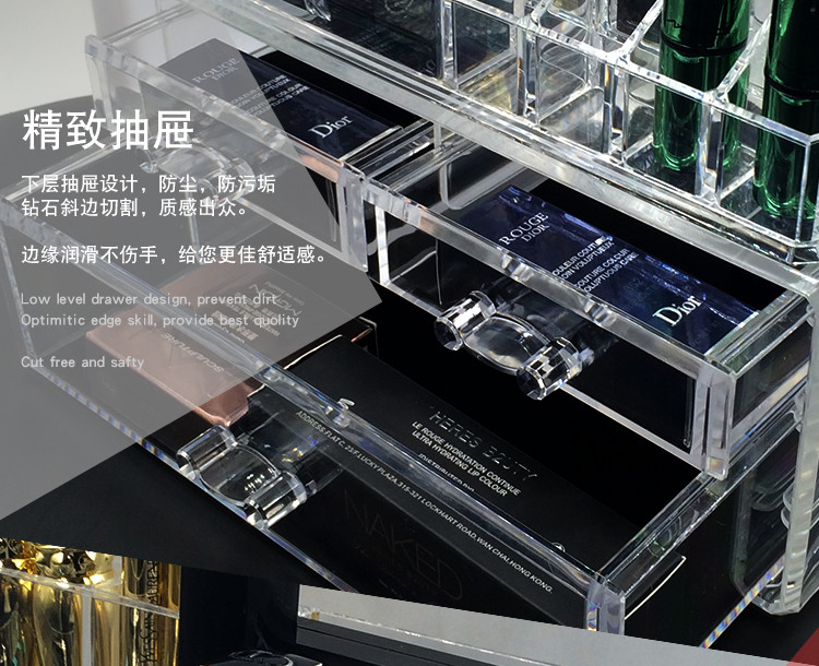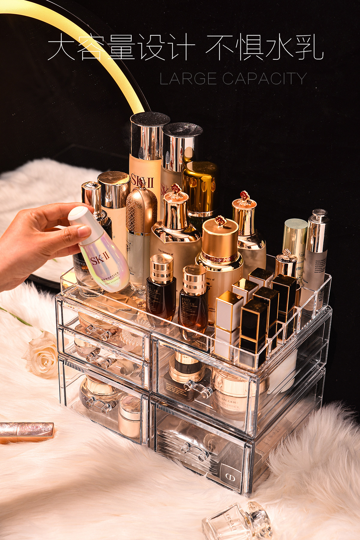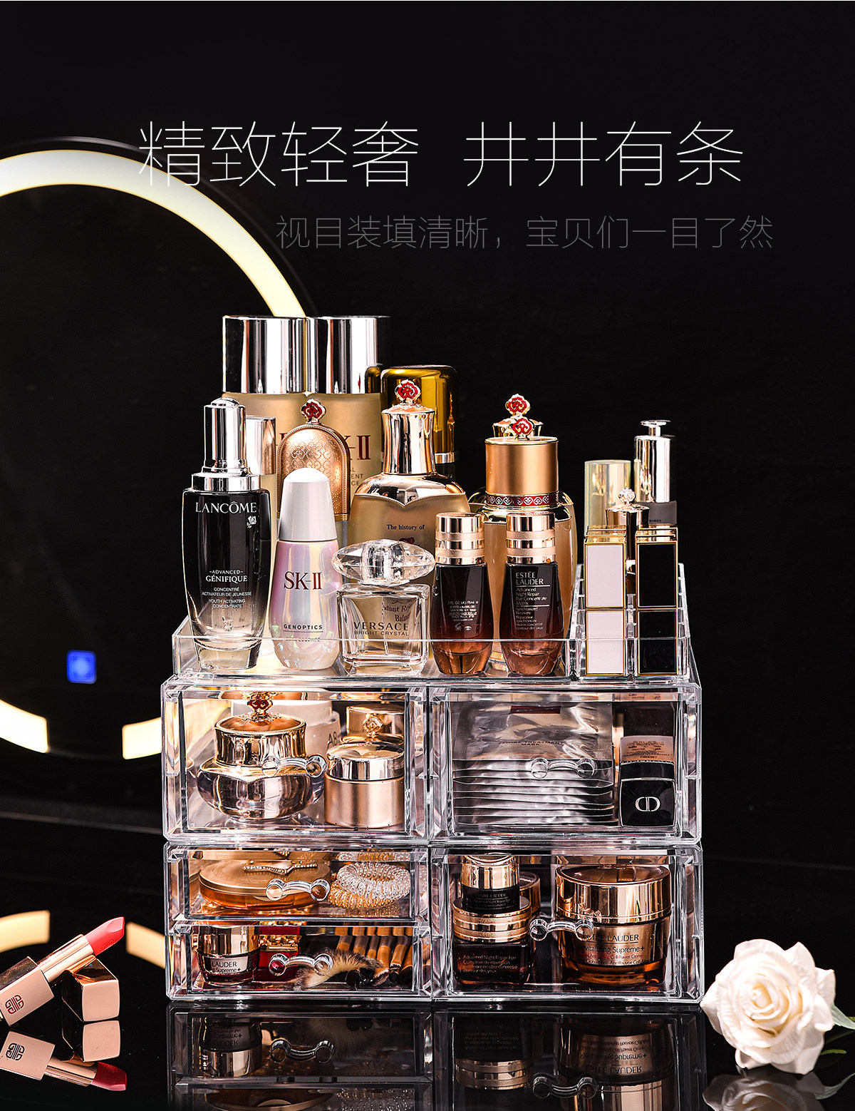 桌面抽屉式亚克力透明化妆品收纳盒大号梳妆台塑料护肤整理置物架