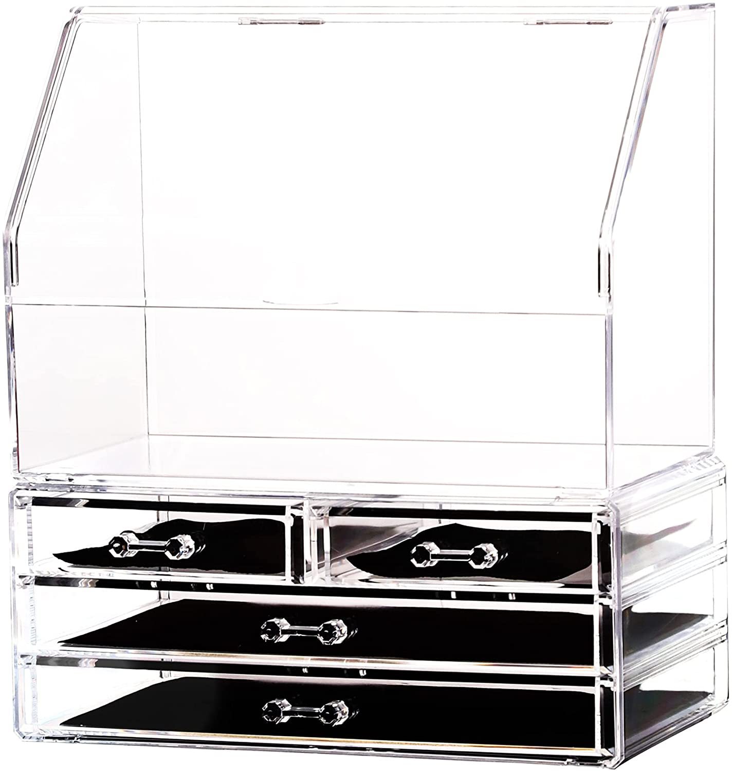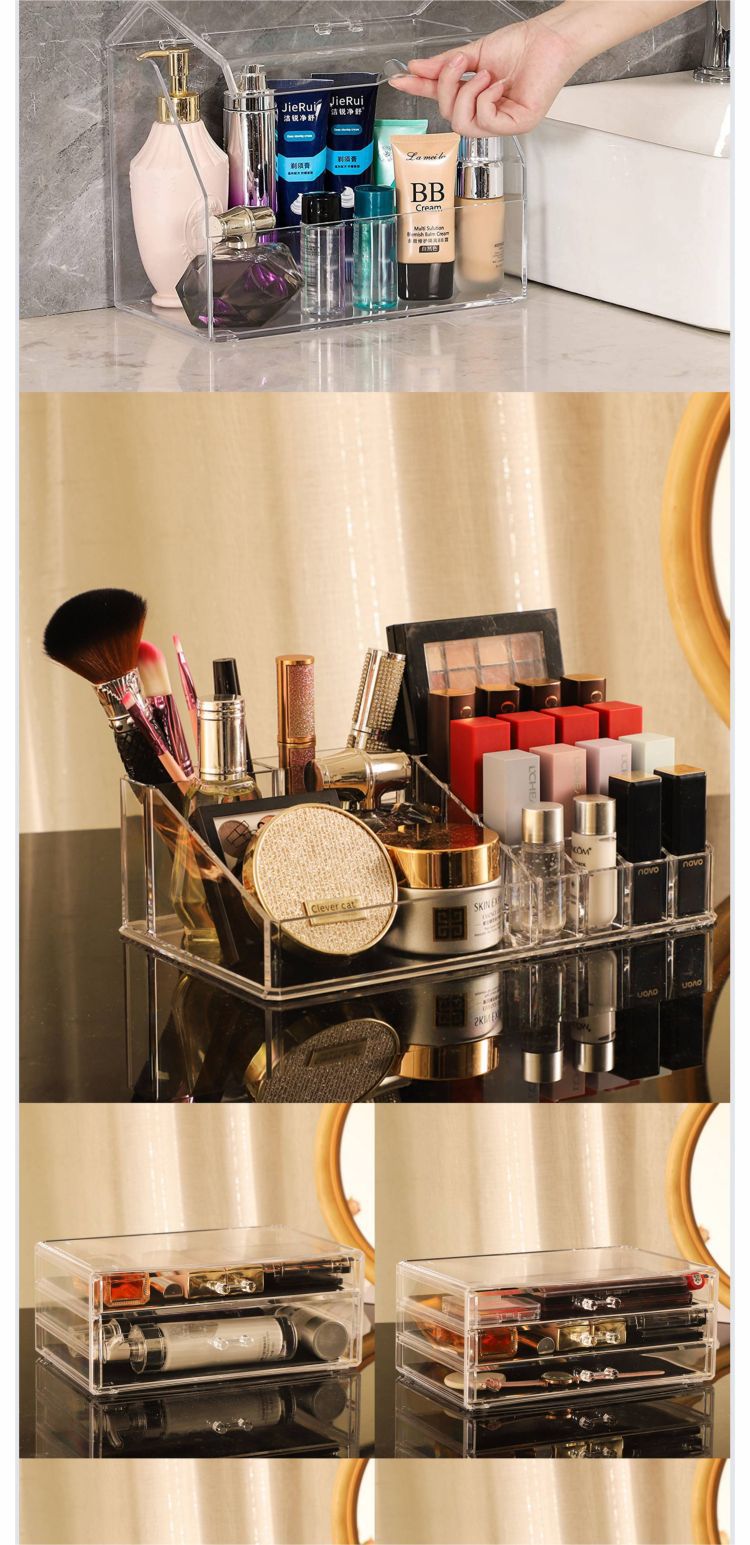 防尘翻盖化妆品收纳盒大容量护肤品口红宿舍整理桌面梳妆台置物架