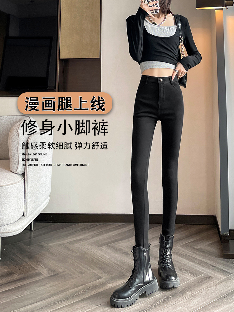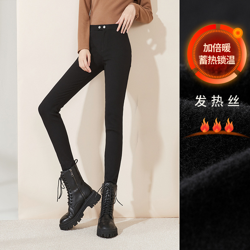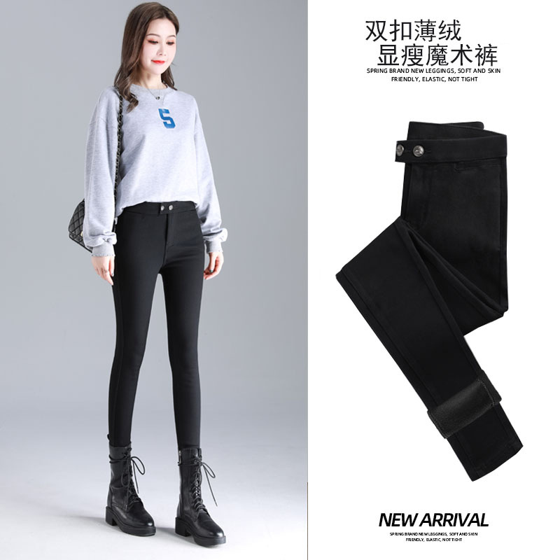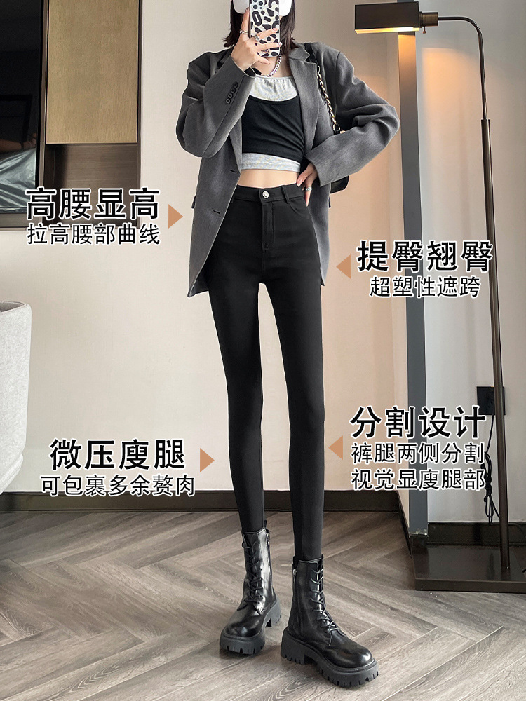 欧美新女款百搭打底裤外穿高腰魔术裤加绒裤小脚铅笔裤时尚小黑裤
