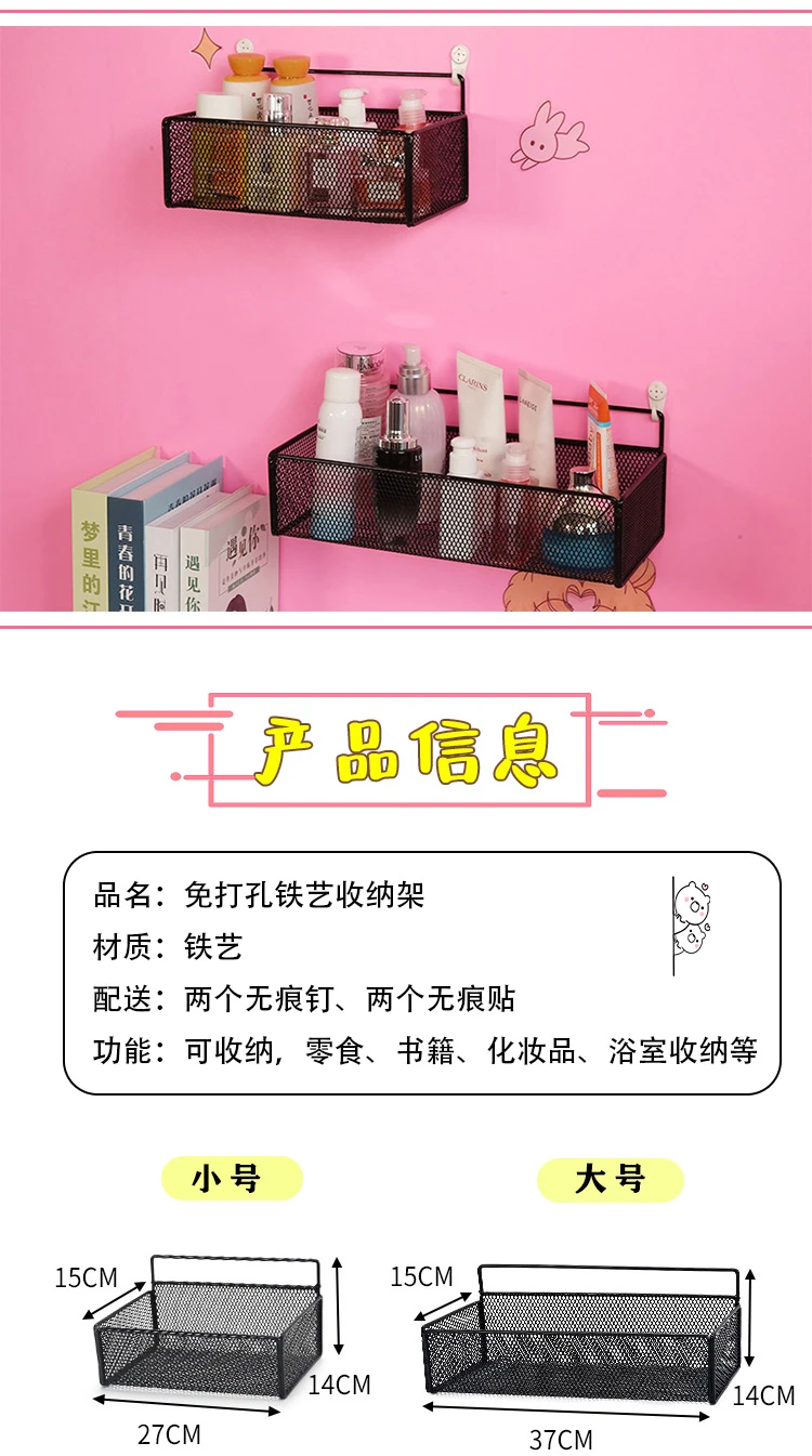 床头置物架卫生间挂墙免打孔墙壁收纳架卧室宿舍神器壁挂墙上挂篮