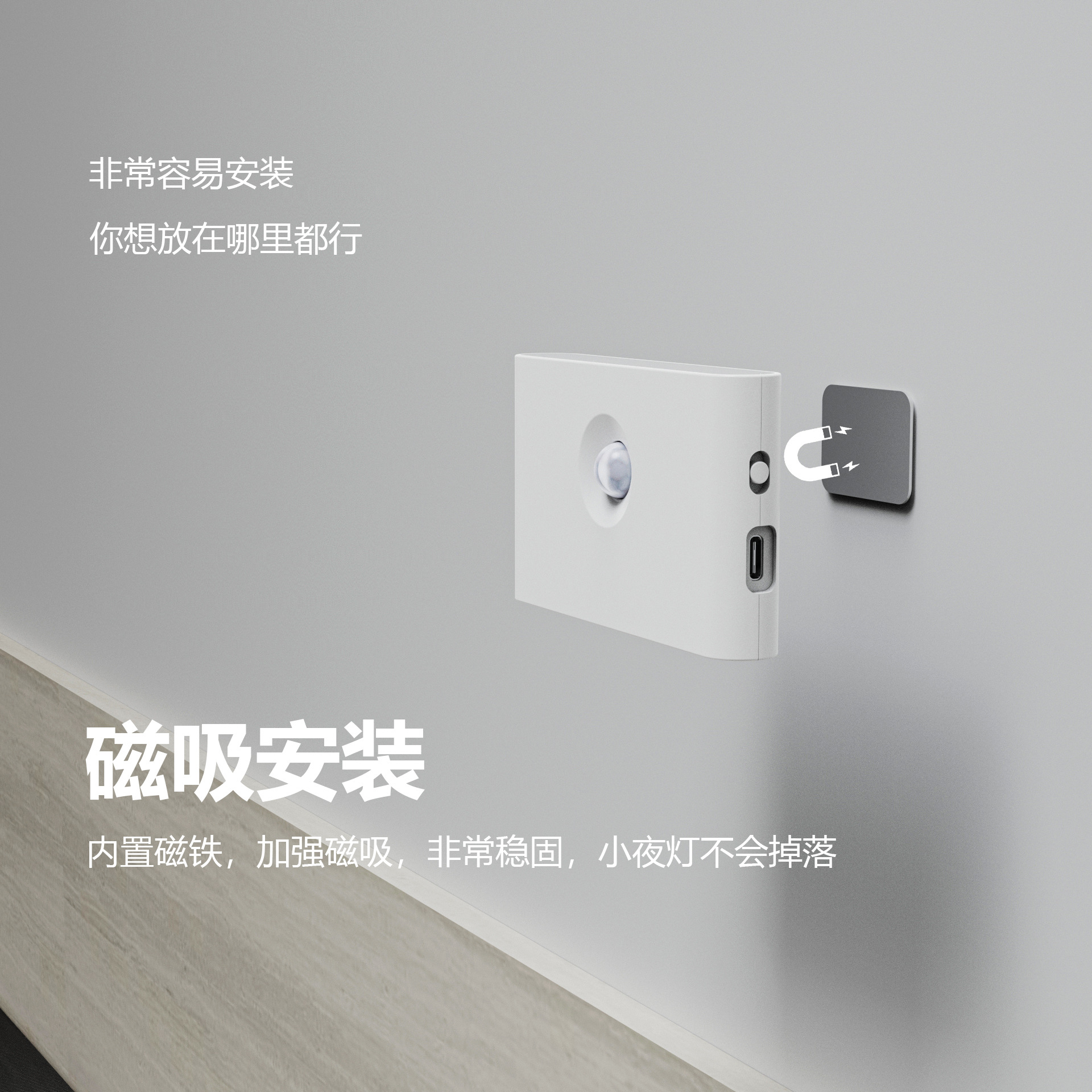 智能感应小夜灯充电无线磁吸式起夜灯LED人体红外type-c口长续航