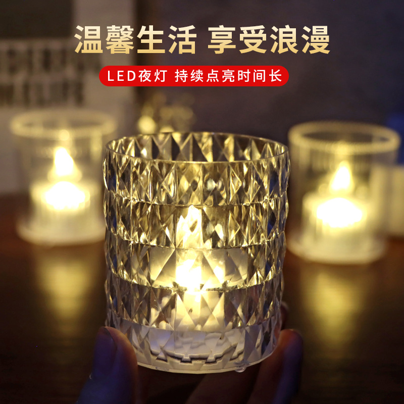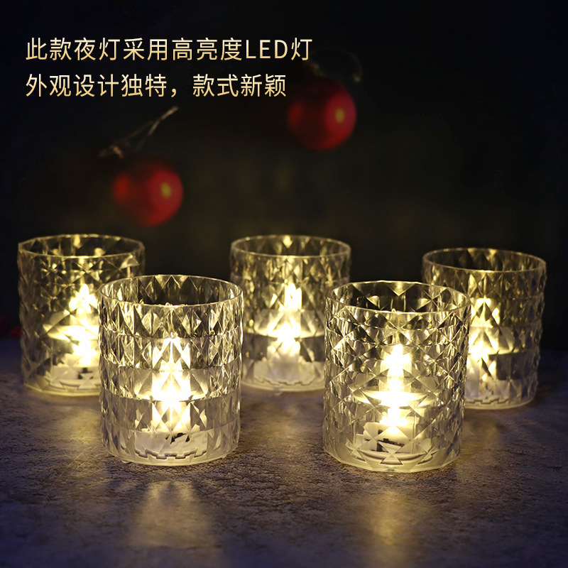跨境新款LED电子透明蜡烛灯小夜灯酒吧布置婚庆气氛套装摆