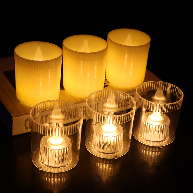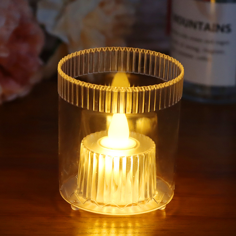 跨境新款LED电子透明蜡烛灯小夜灯酒吧布置婚庆气氛套装摆
