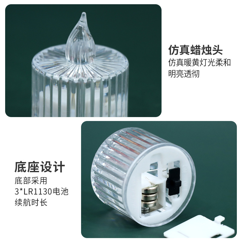 跨境新款LED电子蜡烛透明亚克力折线外壳茶蜡婚礼生日求婚氛围灯