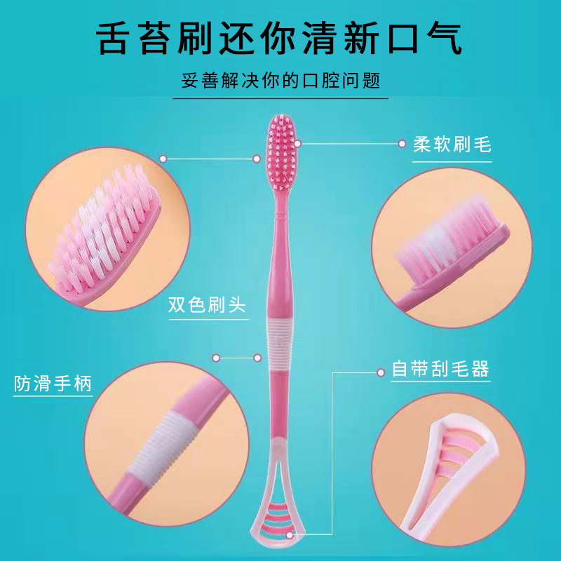 新款二合一 双效刮舌苔清洁器牙刷清新除口臭软毛 软胶刮舌器牙刷