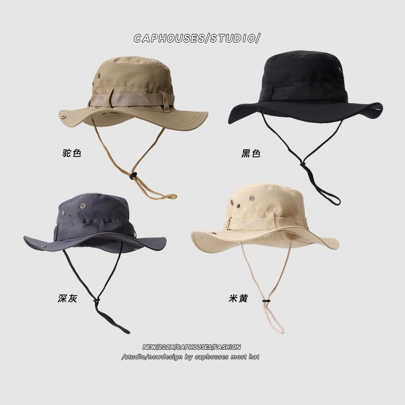 日系潮牌渔夫帽子男女夏季透气防晒户外露营登山钓鱼帽西部牛仔帽