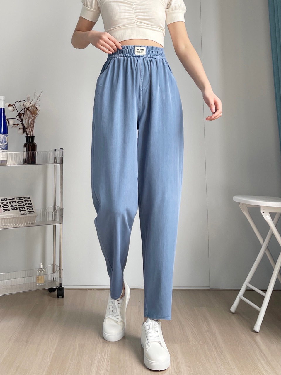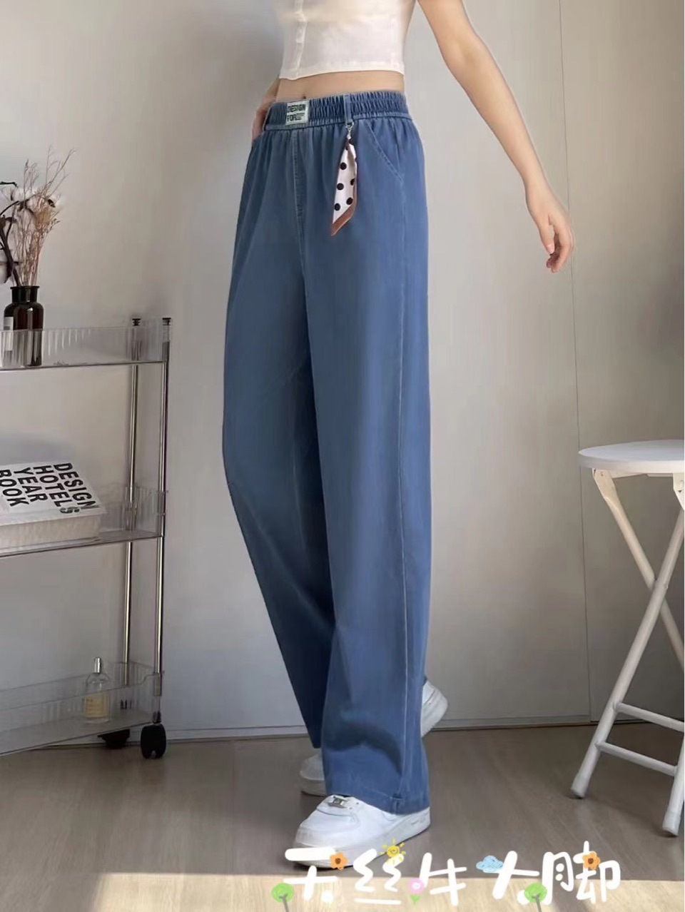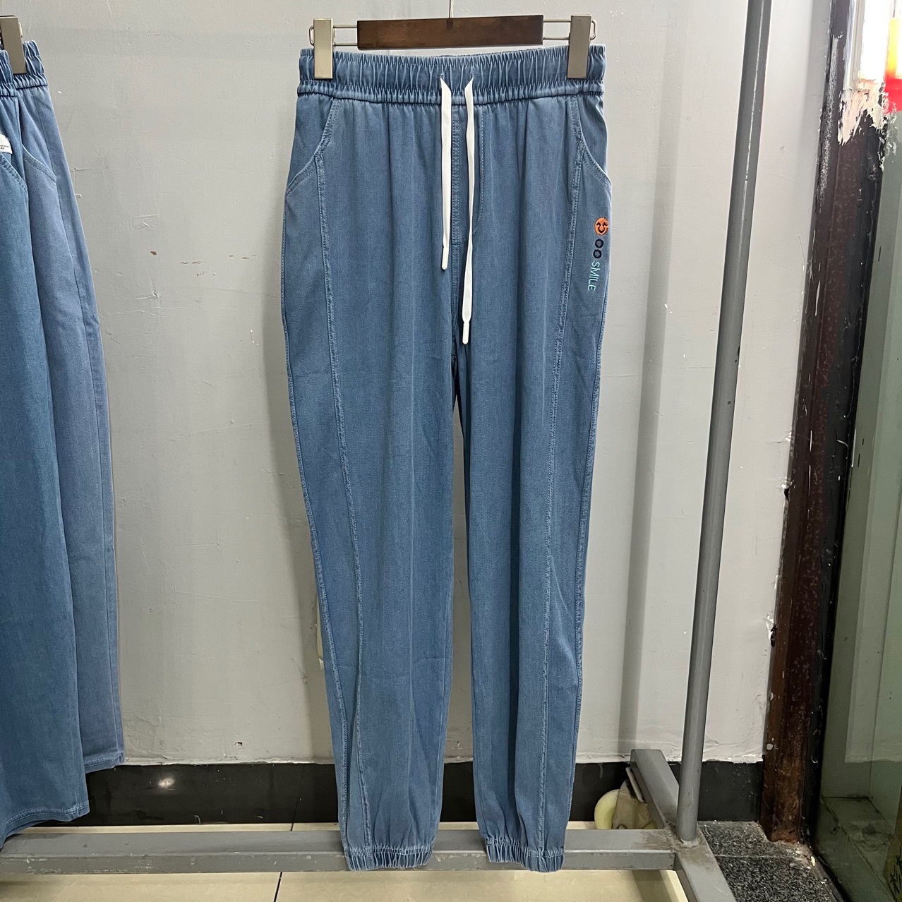 九分天丝牛仔裤女2023年夏季新款冰丝宽松哈伦裤显瘦直筒薄款裤子