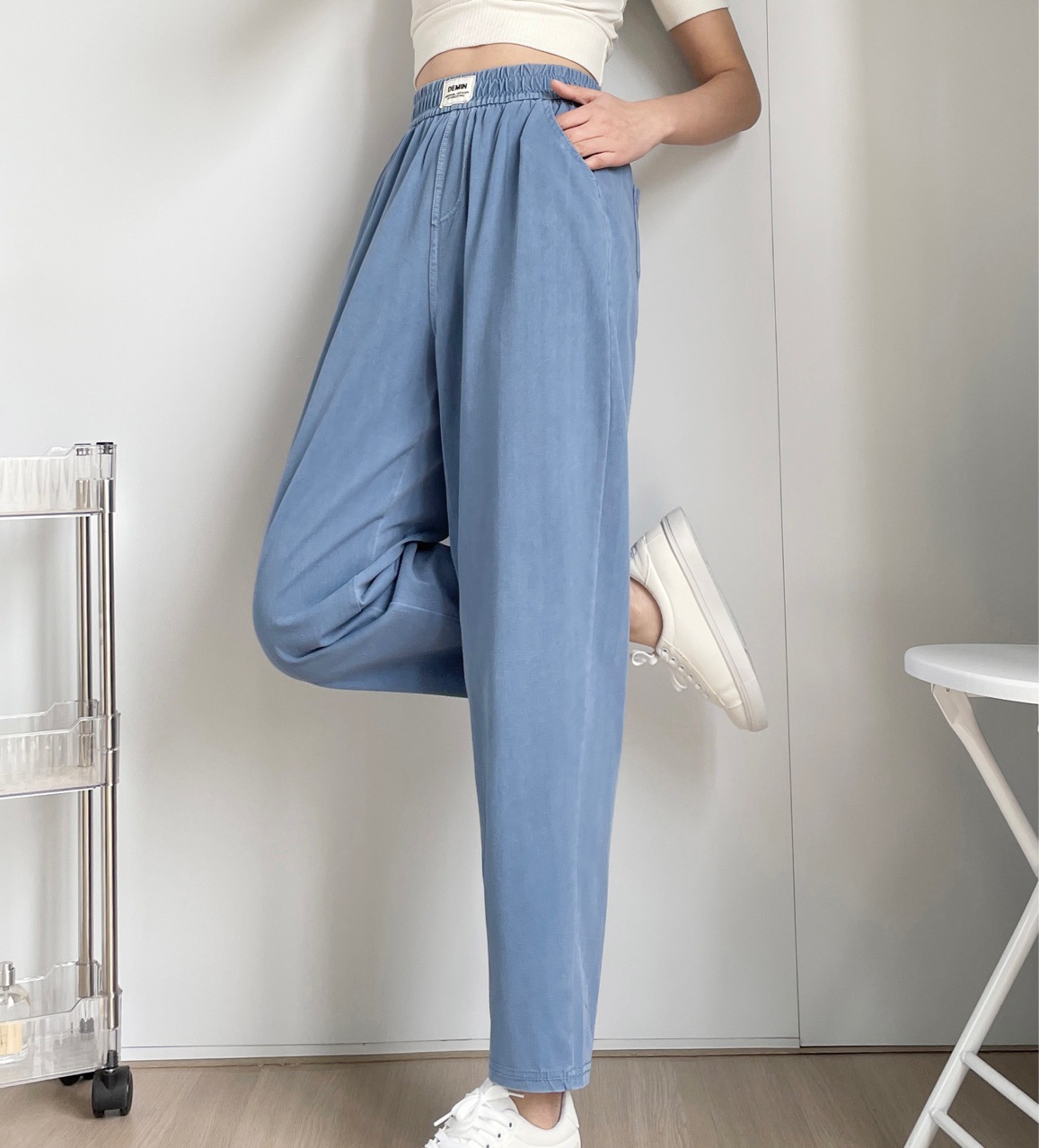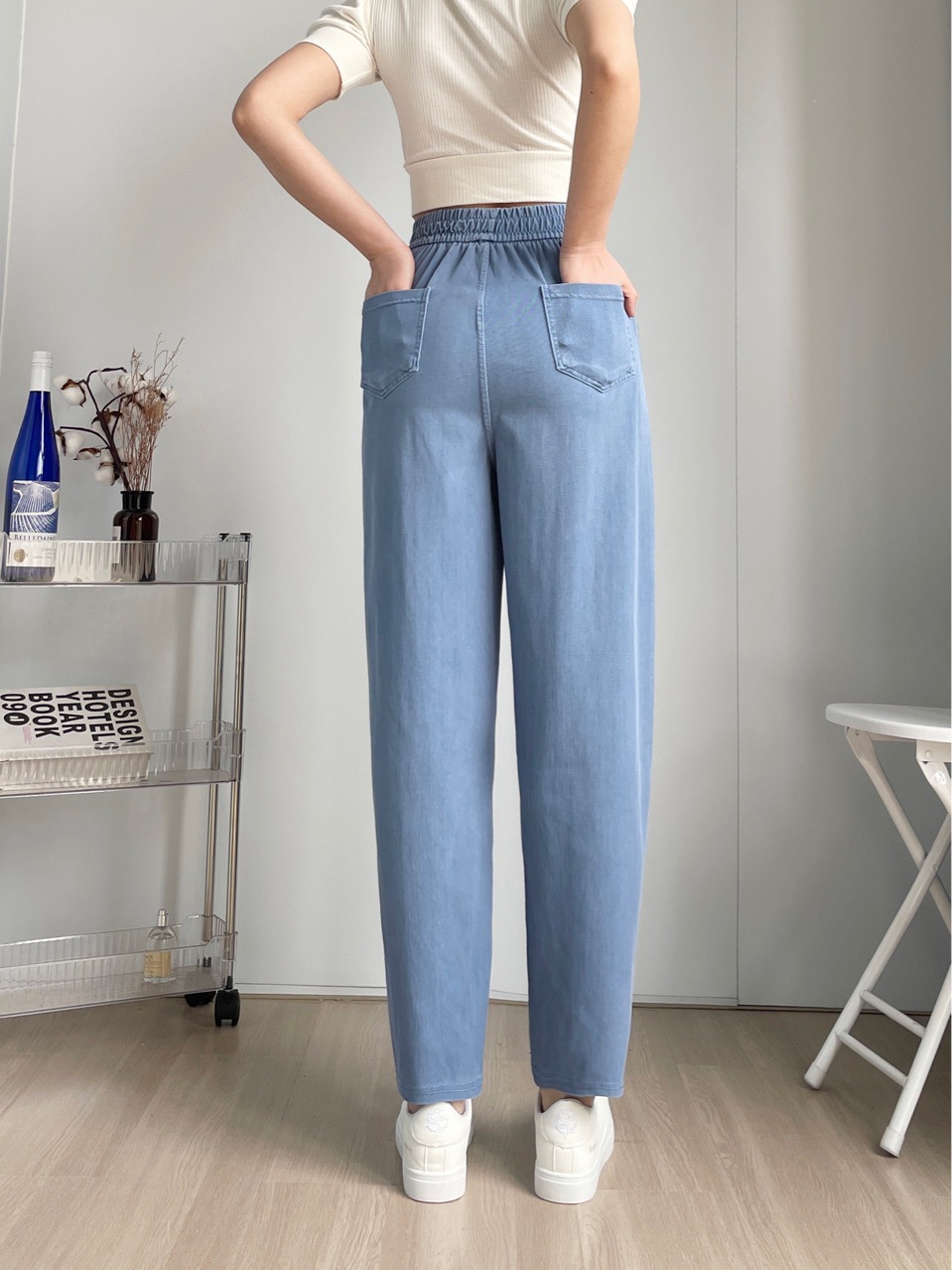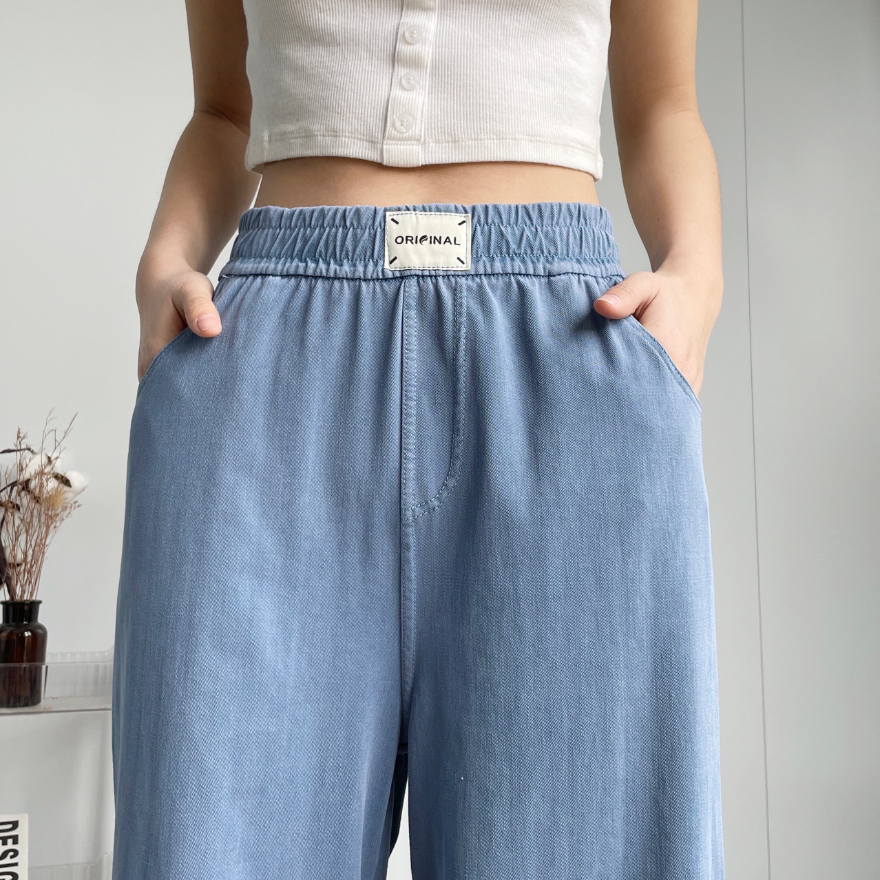 九分天丝牛仔裤女2023年夏季新款冰丝宽松哈伦裤显瘦直筒薄款裤子