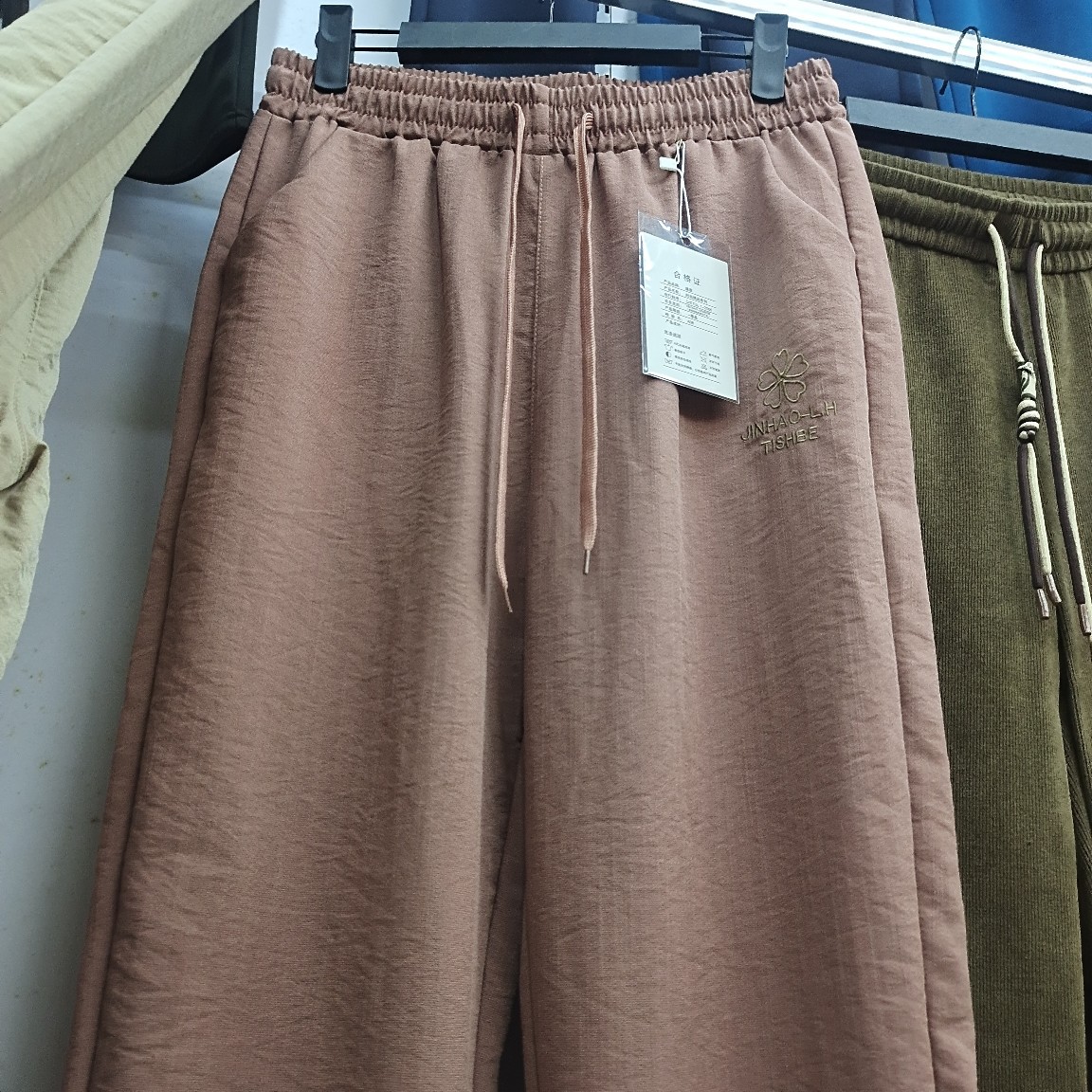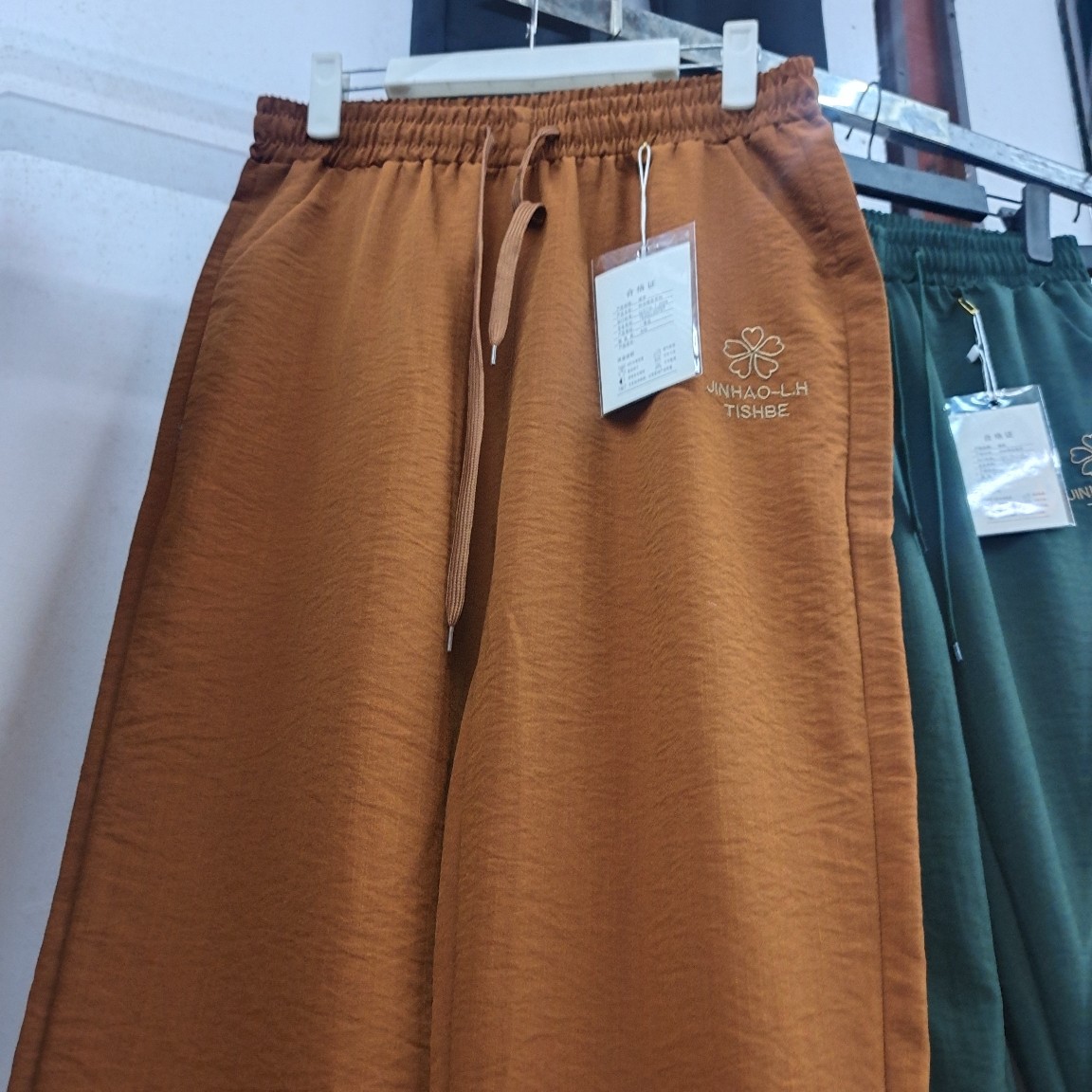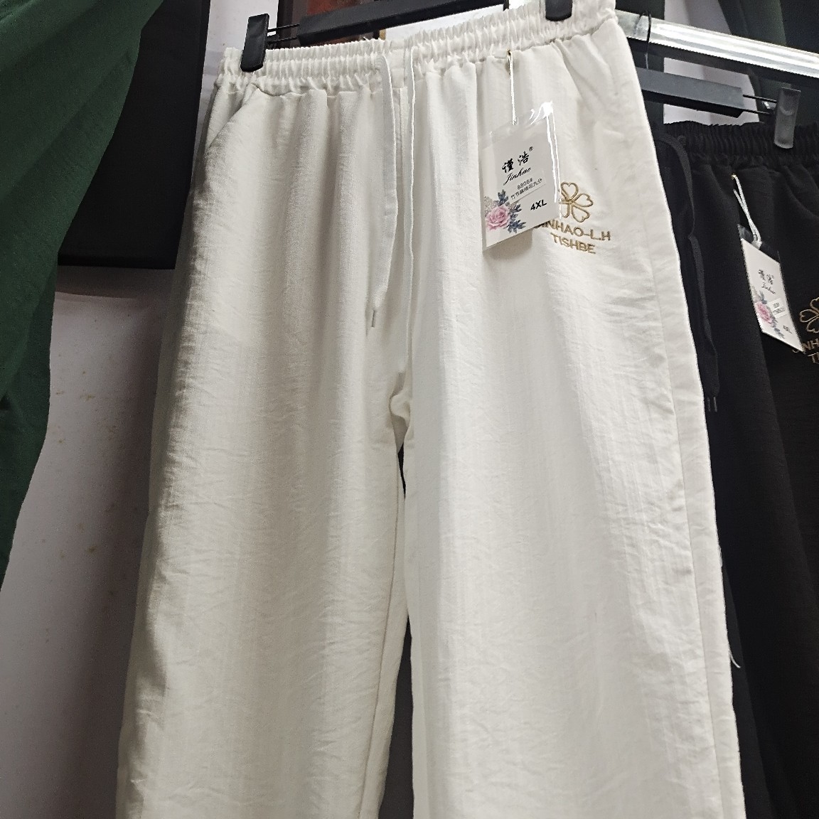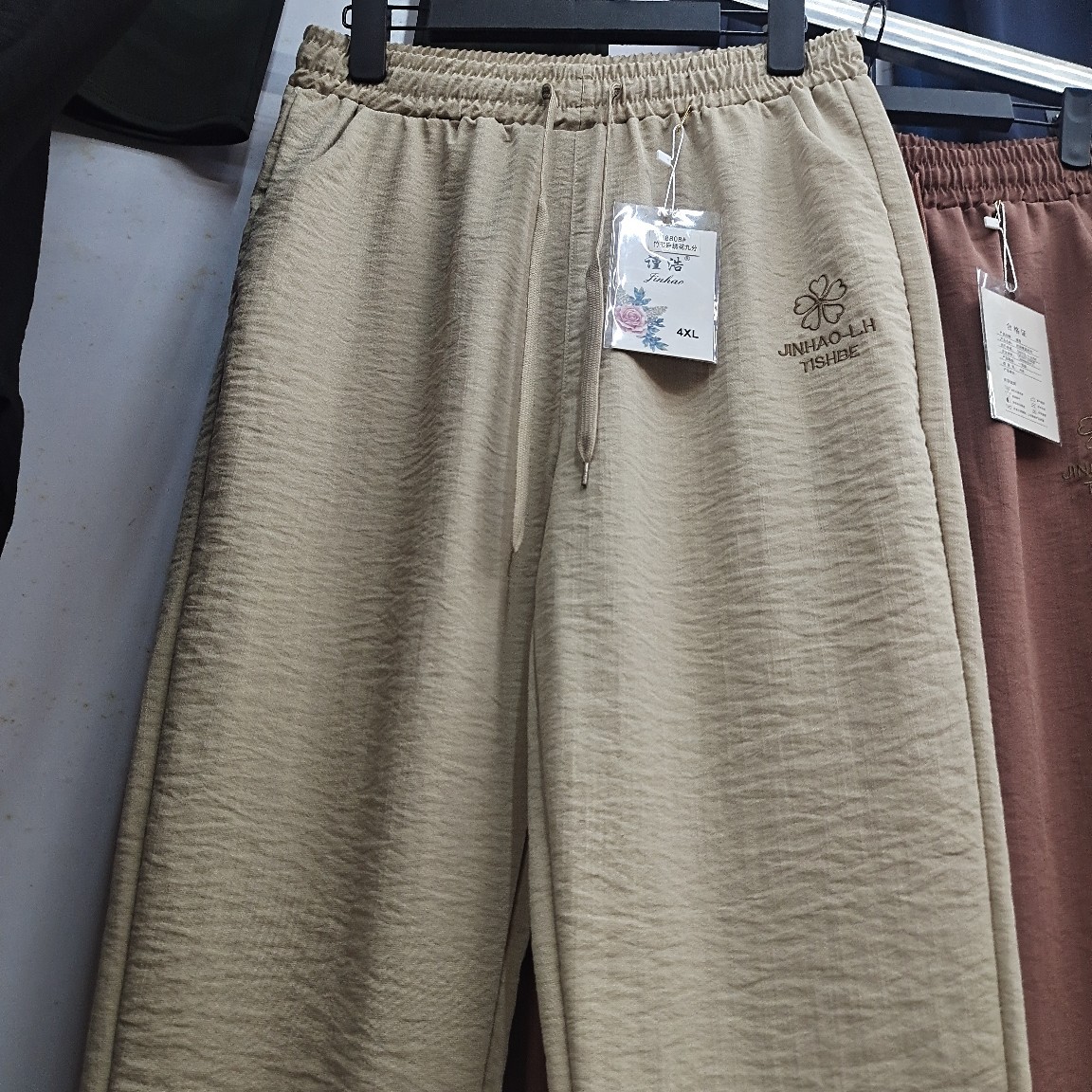 夏季新款妈妈裤竹节麻刺绣裤松紧腰宽松大码纯色休闲裤中老年女裤