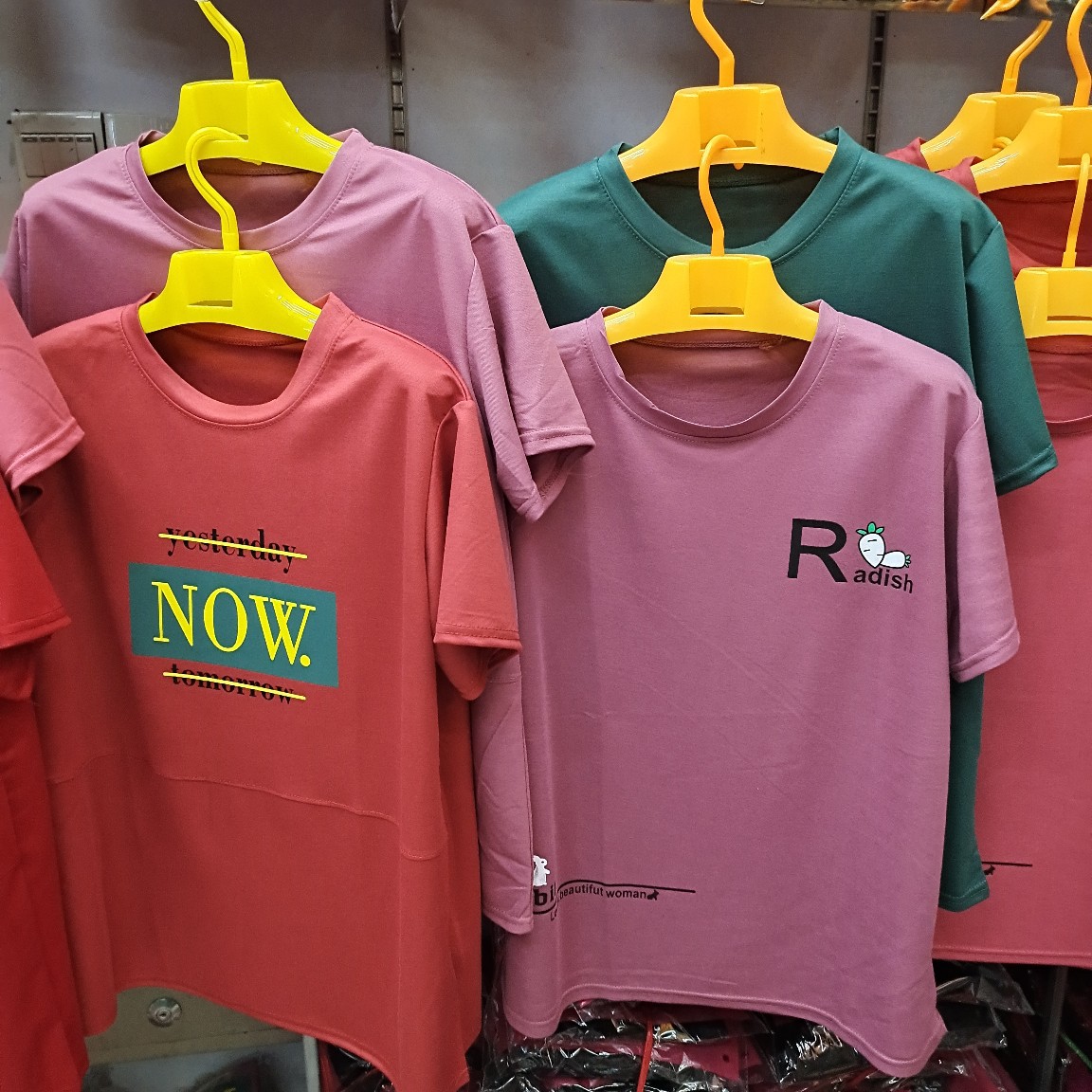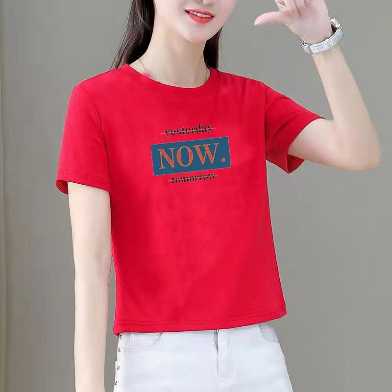 短袖t恤上衣女装2023新款潮夏季短款修身显瘦简约印花中老年T恤衫