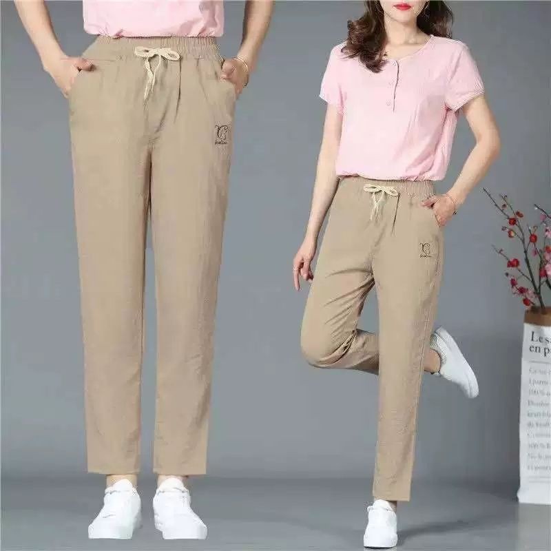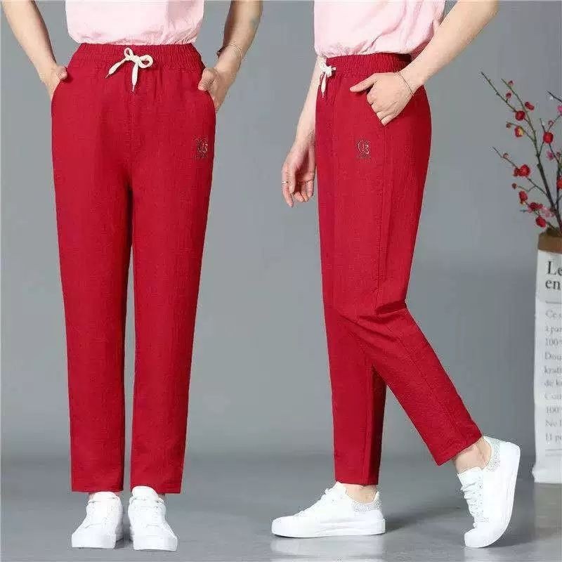 中老年女装夏季直筒长裤妈妈装弹力休闲九分裤奶奶松紧腰弹力裤子